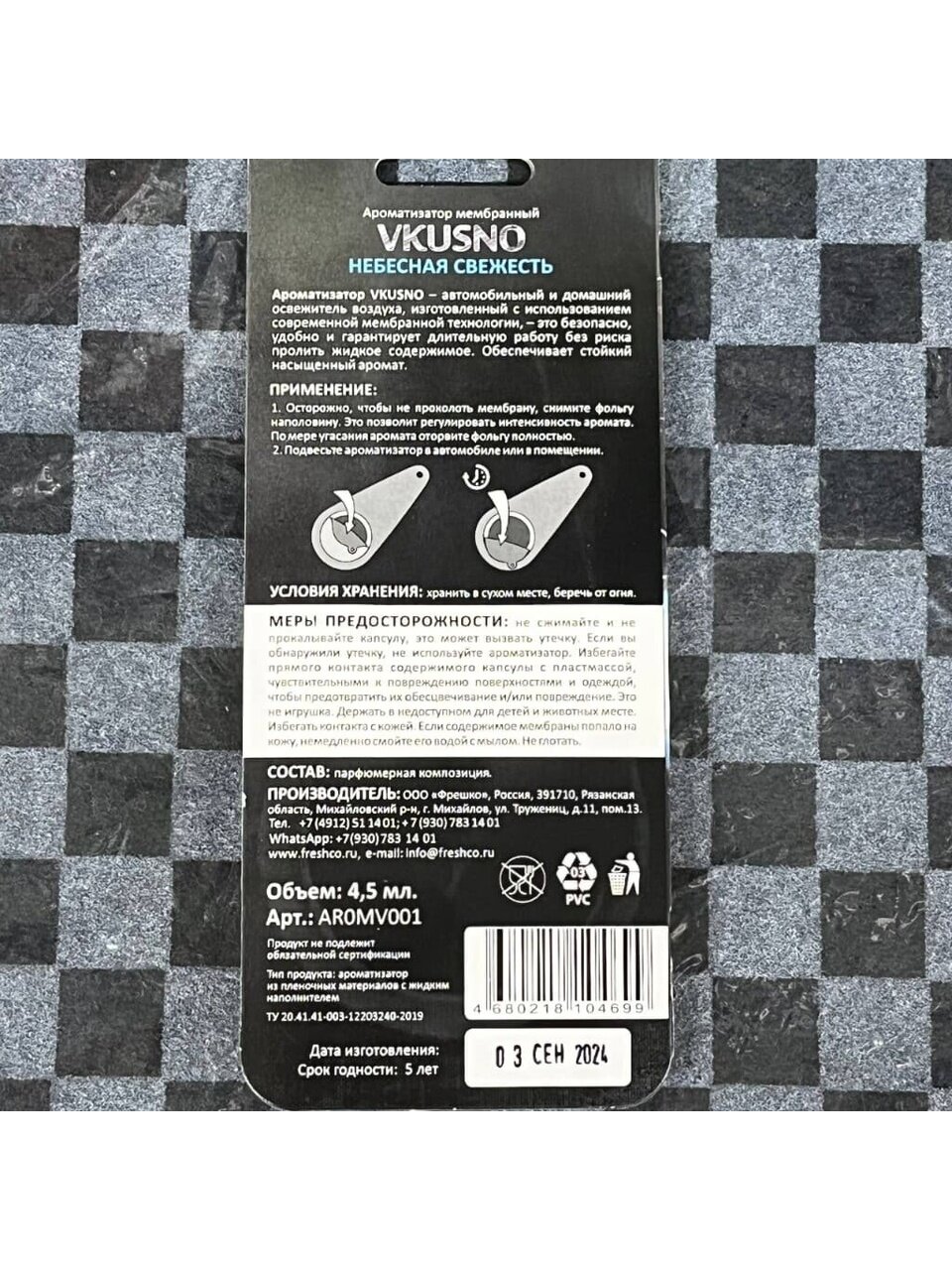 Вы можете приобрести «Ароматизатор в машину подвесной, мембрана, Freshco, Vkusno Небесная свежесть, AR0MV001» и другие товары в нашем интернет-магазине в Иваново по низким ценам и с бесплатным самовывозом.
