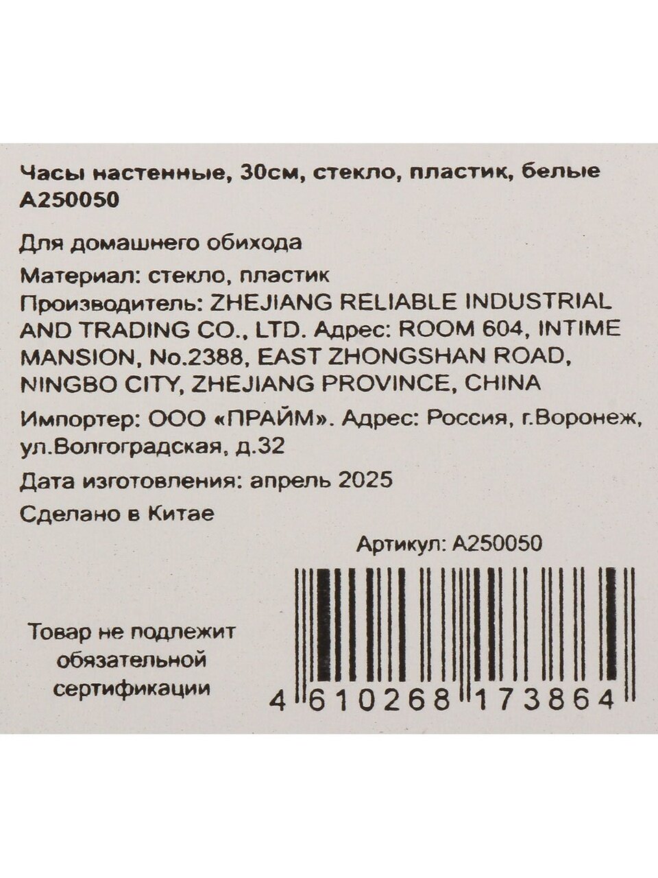 Модель отличается лаконичным внешним видом и высокой надежностью. Качественные материалы — стекло и пластик — обеспечивают долговечность и легкость ухода. Такой аксессуар не требует особого обслуживания и сохраняет привлекательный внешний вид на протяжении долгого времени. Благодаря универсальному размеру 30 см часы легко читаются даже с большого расстояния, что делает их идеальным выбором для кухни, гостиной, спальни или офиса.