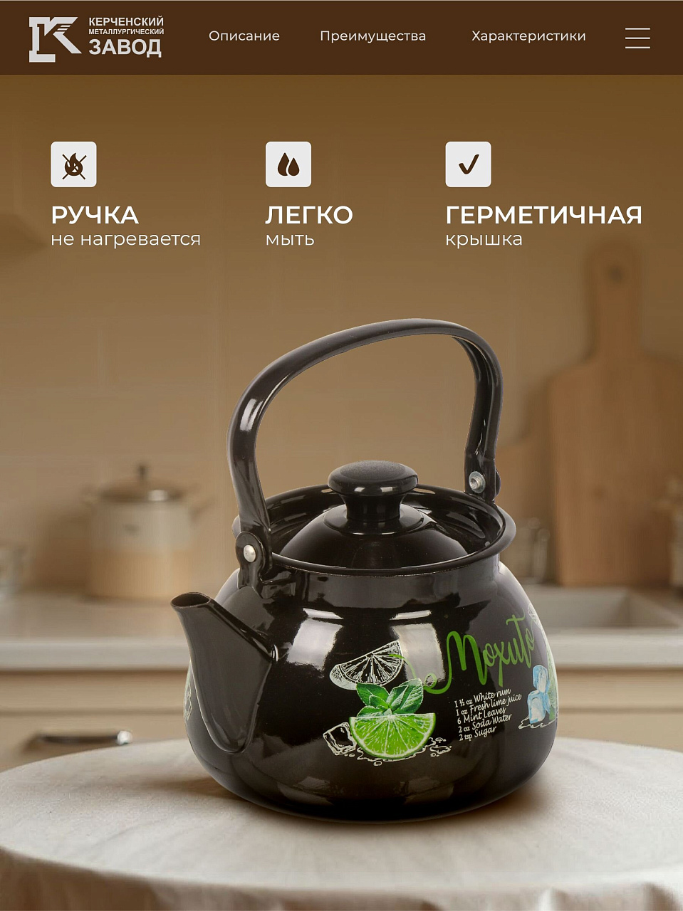 Вы можете приобрести «Чайник сталь, эмалированное покрытие, 3 л, ручка металлическая, Керченский металлургический завод, Мохито, черный, 42115-123/6-У4» и другие товары в нашем интернет-магазине в Таганроге по низким ценам и с бесплатным самовывозом.