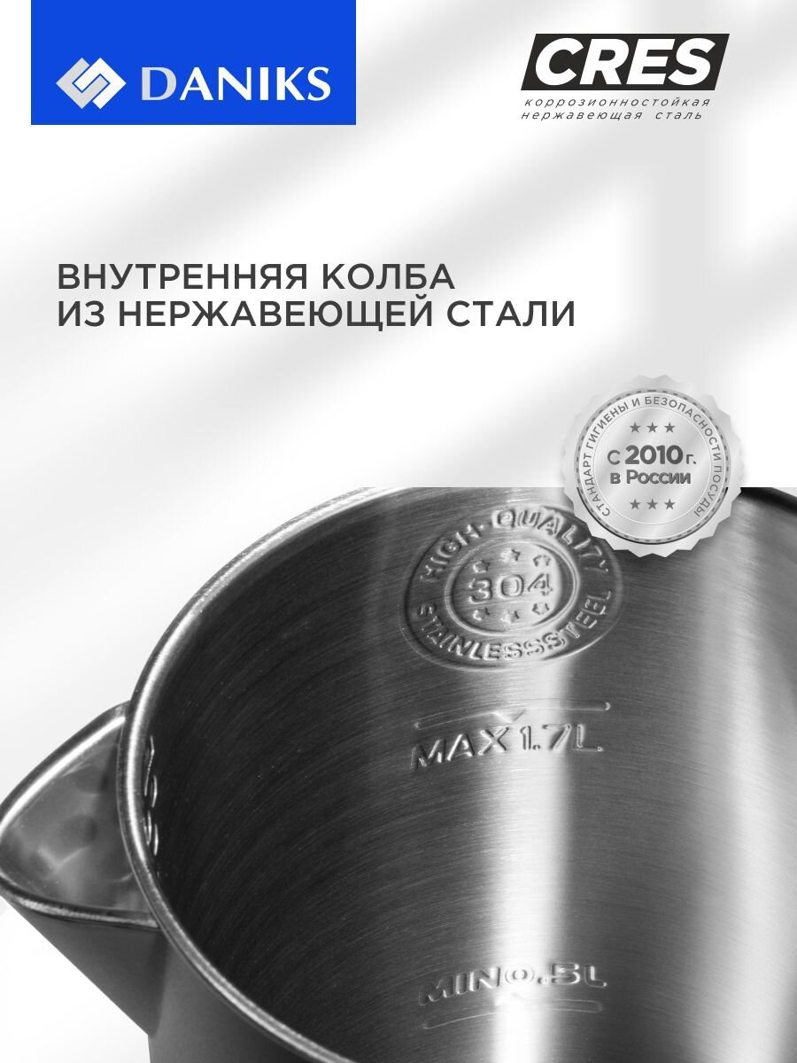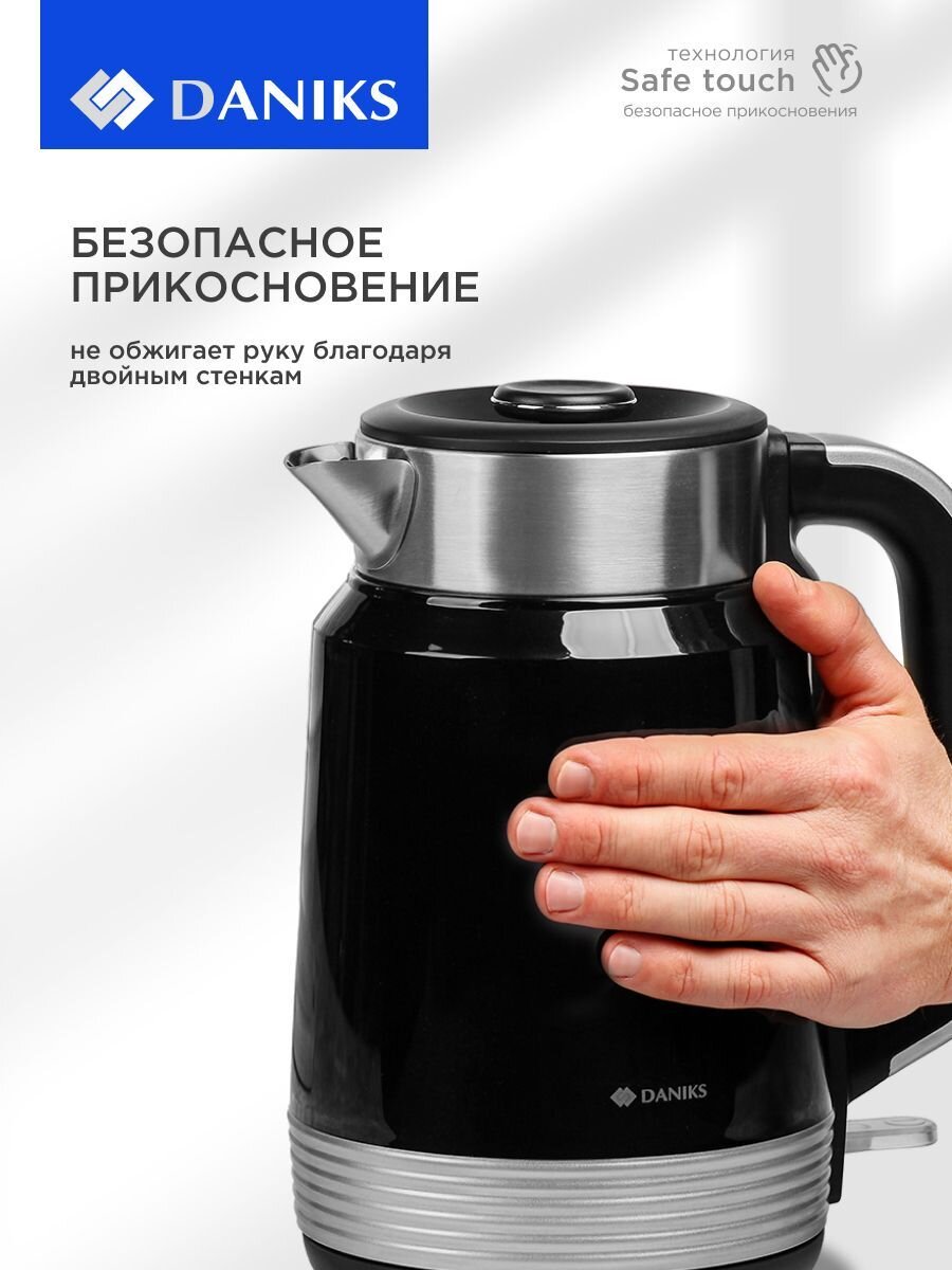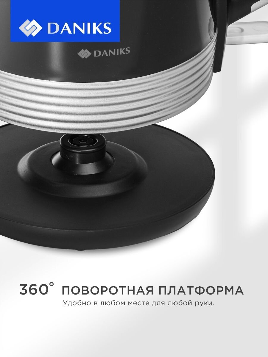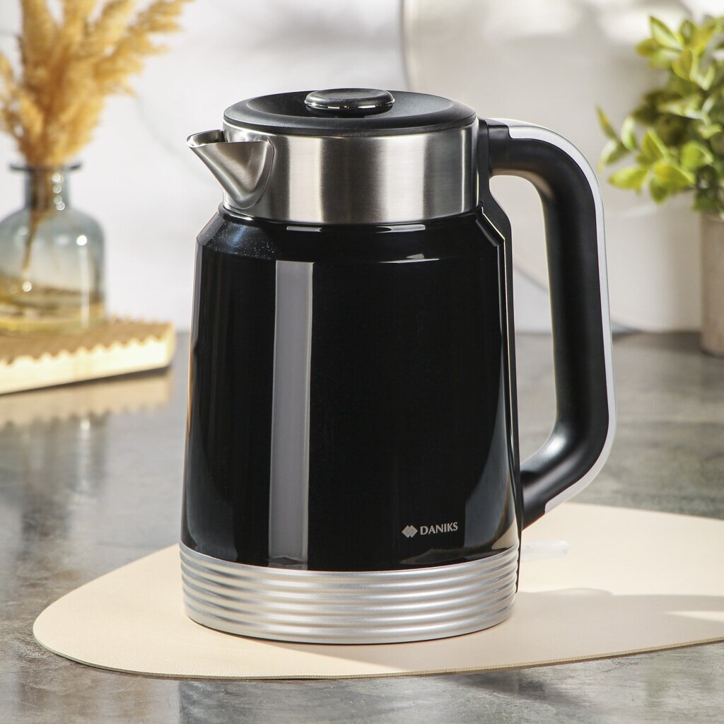 Чайник электрический Daniks, D3020, черный глянцевый, 1.7 л, 2200 Вт, скрытый нагревательный элемент, пластик
