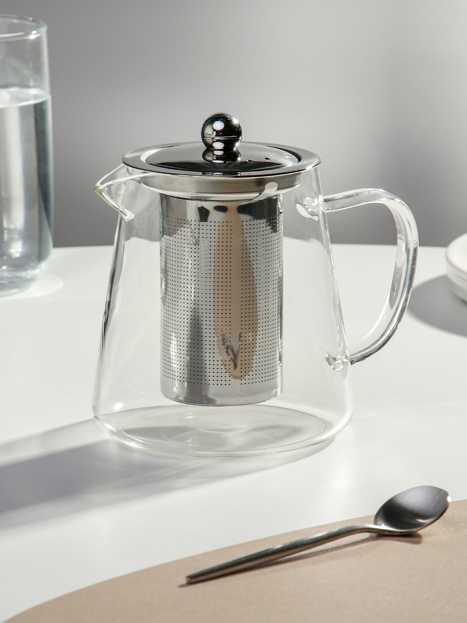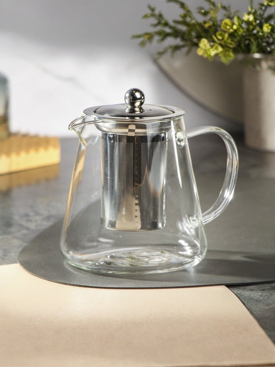 Откройте для себя искусство заваривания чая с изящным и современным заварочным чайником из стекла и металла объемом 750 мл. Этот стильный аксессуар станет отличным дополнением к любой кухне и поможет насладиться любимыми чаями с максимальным комфортом и изысканностью.