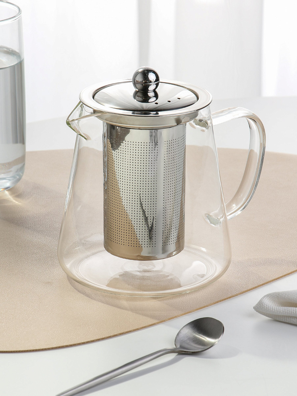 Этот заварочный чайник создан для тех, кто ценит качество и стиль в каждой детали. Его прозрачный корпус из стекла позволяет наблюдать за процессом заваривания чая, добавляя эстетическое удовольствие к ежедневному ритуалу. Металлические элементы, включая крышку из нержавеющей стали, подчеркивают современный дизайн и обеспечивают долговечность использования.