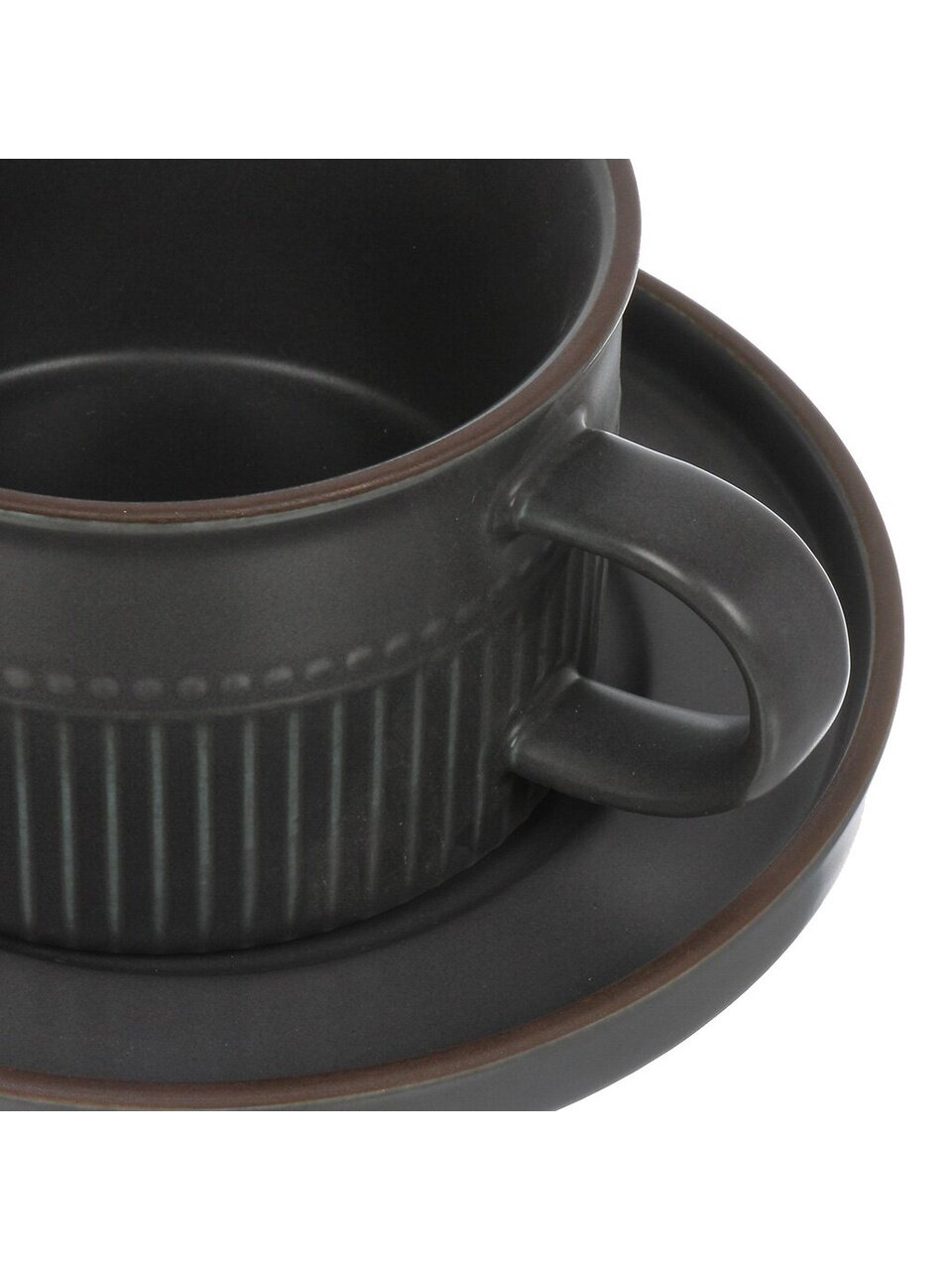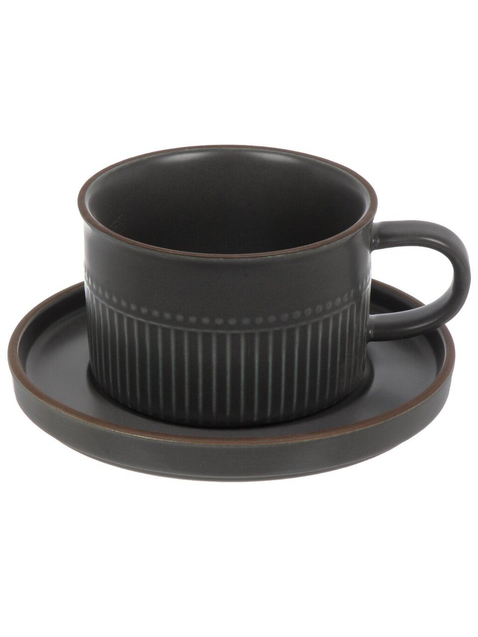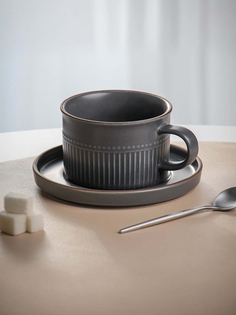 Чайная пара 280 мл «Графитовый Антик»: современный стиль, керамика, подходит для микроволновки и посудомоечной машины. Лаконичный дизайн для ценителей уюта.