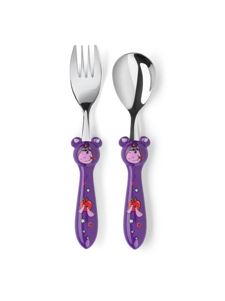 Детский набор Apollo "Kiddy" состоит из ложки и вилки, выполненных из высококачественной нержавеющей стали с зеркальной полировкой. Ручки изделий выполнены из пищевого пластика в оригинальной форме. Эксклюзивный дизайн, эстетичность и функциональность набора позволят ему занять достойное место среди кухонного инвентаря.