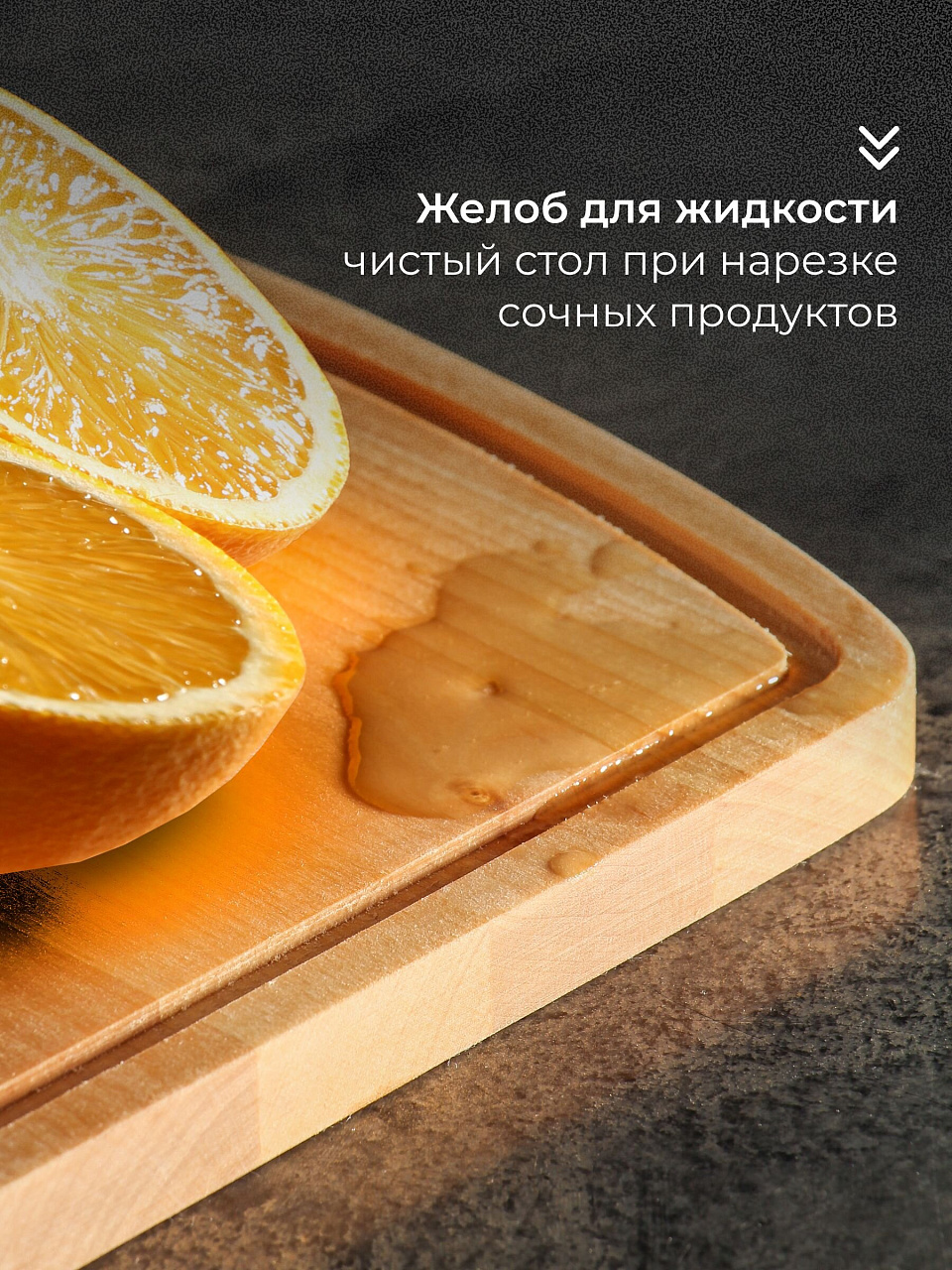 Доска подходит для нарезки мяса, рыбы, овощей, фруктов, хлеба, а также для красивой сервировки на столе. Размер 30х25 см обеспечивает достаточно места для обработки продуктов и удобен для хранения благодаря подвесной конструкции. Специальная канавка по краю защищает рабочую поверхность от лишней влаги и сока, сохраняя чистоту на кухне. Эргономичная ручка облегчает перенос доски и позволяет удобно размещать ее на крючке или рейлинге.