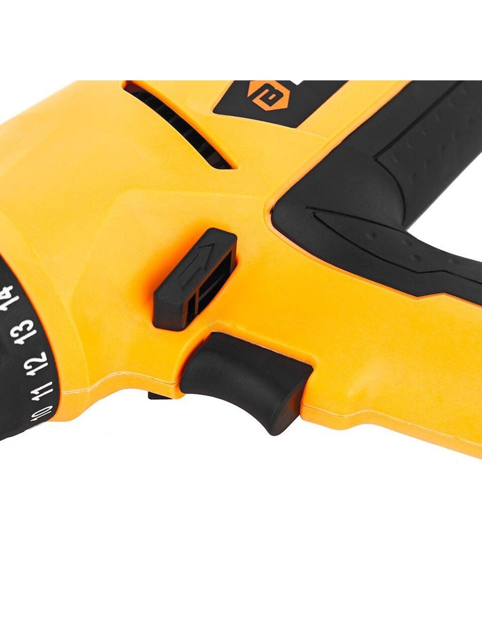 - Регулировка крутящего момента затяжки. Крутящий момент затяжки можно регулировать путем поворота регулировочного кольца, чтобы его градации совмещались с указателем на корпусе инструмента. Крутящий момент затяжки минимален, когда цифра 1 совмещена с указателем, и максимален, когда отметка совмещена с символом сверла. Муфта будет проскальзывать при различных уровнях крутящего момента.