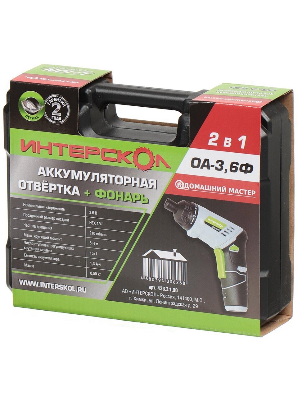 Вы можете приобрести «Отвертка аккумуляторная, Интерскол, ОА-3.6Ф Д Мастер, 3.6 В, 1.3 А.ч, Li-ion, 210 об/мин, кейс, набор бит, 433.0.1.00» и другие товары в нашем интернет-магазине в Армавире по низким ценам и с бесплатным самовывозом.