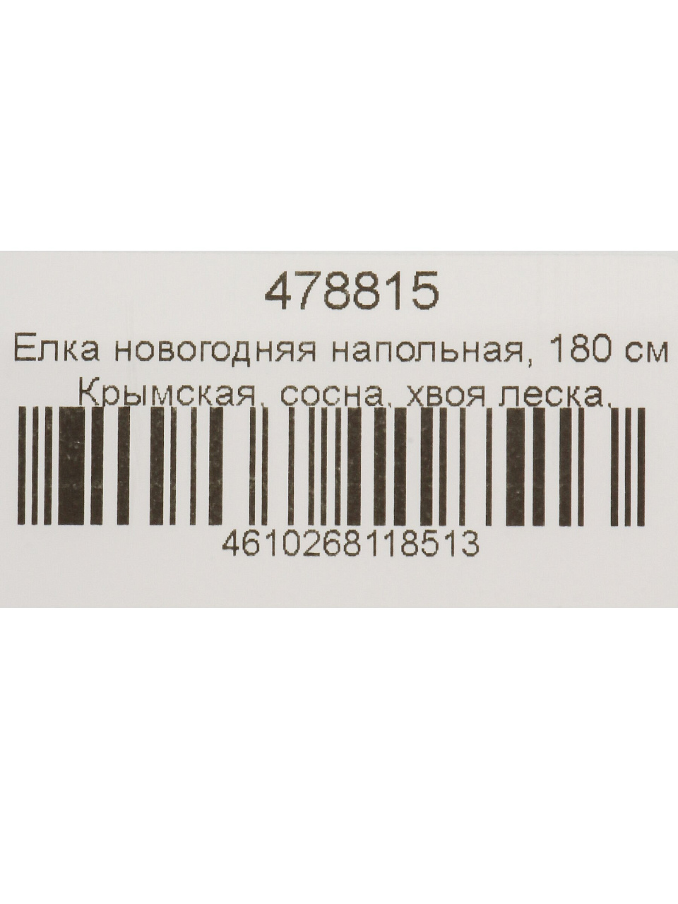 Высота елки — 180 см, тип — напольная, форма — классическая, хвоя — леска, цвет — белый (заснеженный), подставка металлическая, конструкция разборная, модель Крымская, артикул Y4-8417.