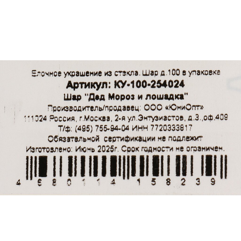 - Ручная роспись — каждый шар уникален, с детальной прорисовкой Деда Мороза и лошадки.
