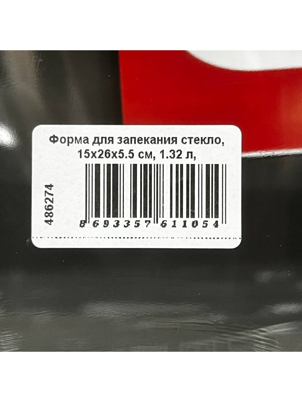 Объём формы — 1,32 литра, размеры: ширина 15 см, длина 26 см, высота 5,5 см. Это оптимально для запекания курицы, рыбы, овощей, пирогов и других блюд.