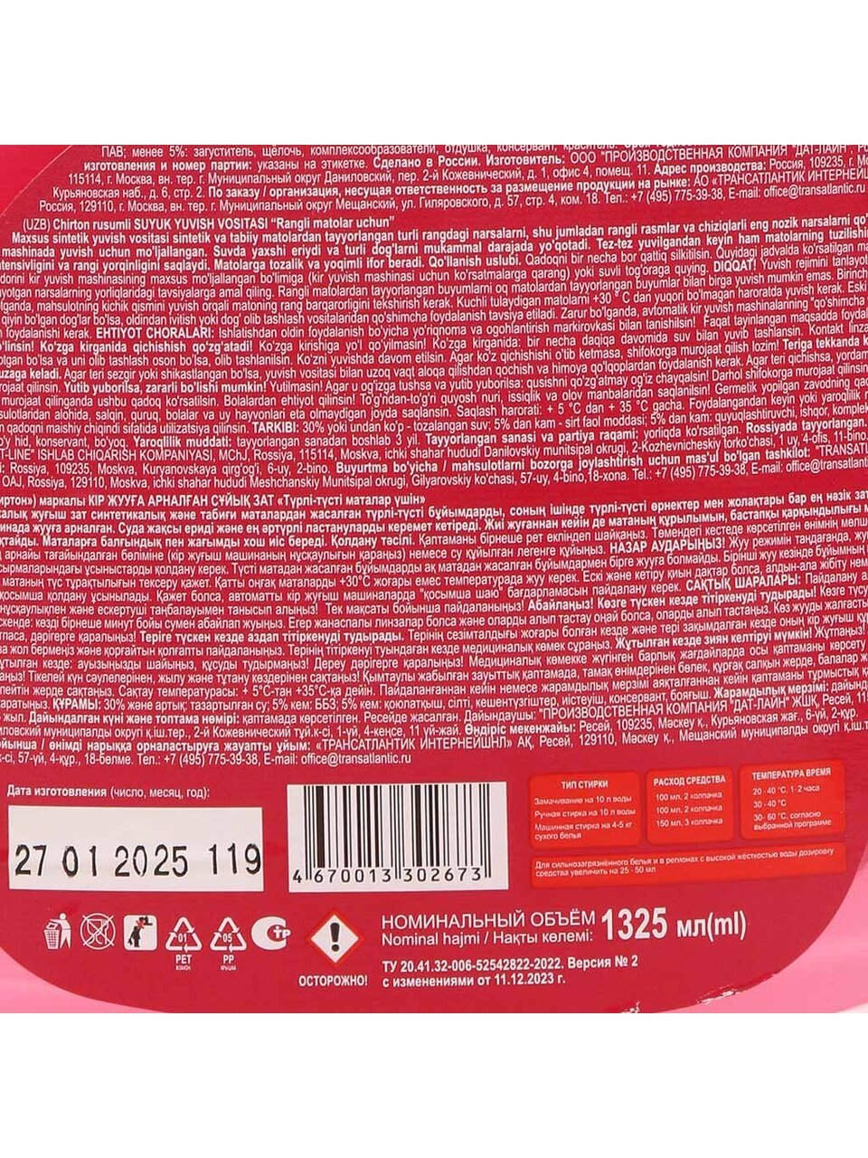 Вы можете приобрести «Гель для стирки Chirton, 1.325 л, для цветного белья» и другие товары в нашем интернет-магазине в Обнинске по низким ценам и с бесплатным самовывозом.