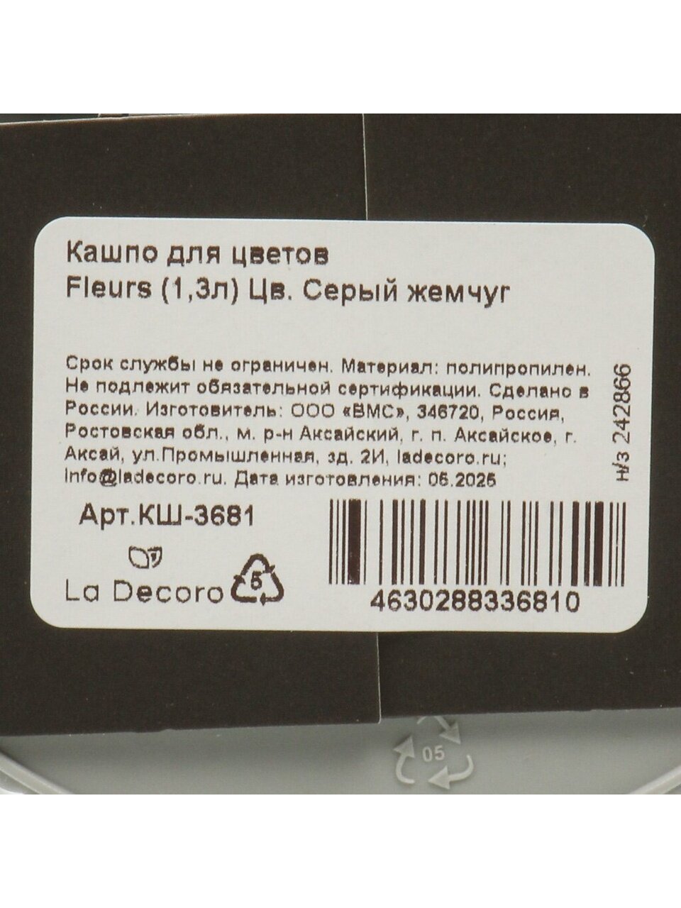 Вы можете приобрести «Кашпо пластик, 1.3 л, 12.5х13.2 см, серый жемчуг, La Decoro, Fleurs, КШ-3681» и другие товары в нашем интернет-магазине в Краснодаре по низким ценам и с бесплатным самовывозом.