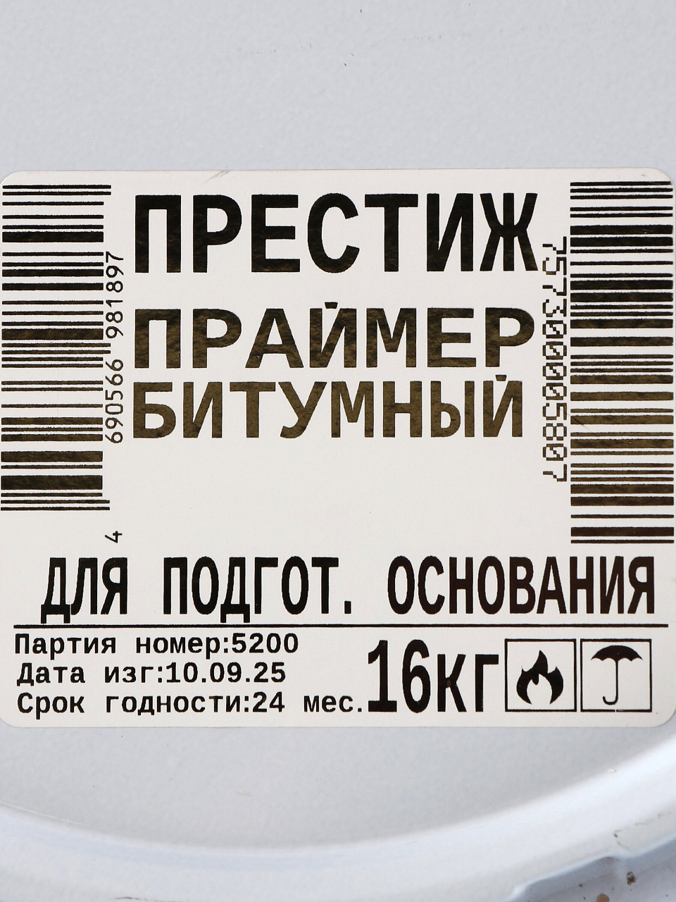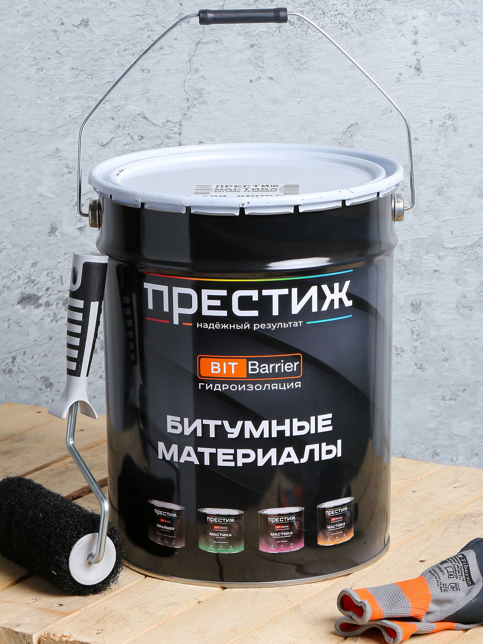 Праймер Престиж, битумный, 16 кг — надежная подготовка основания для гидроизоляции: ускоряет работы, обеспечивает прочное сцепление и долговечную защиту.