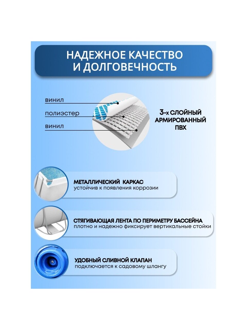 - в комплекте: насос, лестница, тент и поплавок-дозатор, что делает использование максимально удобным;