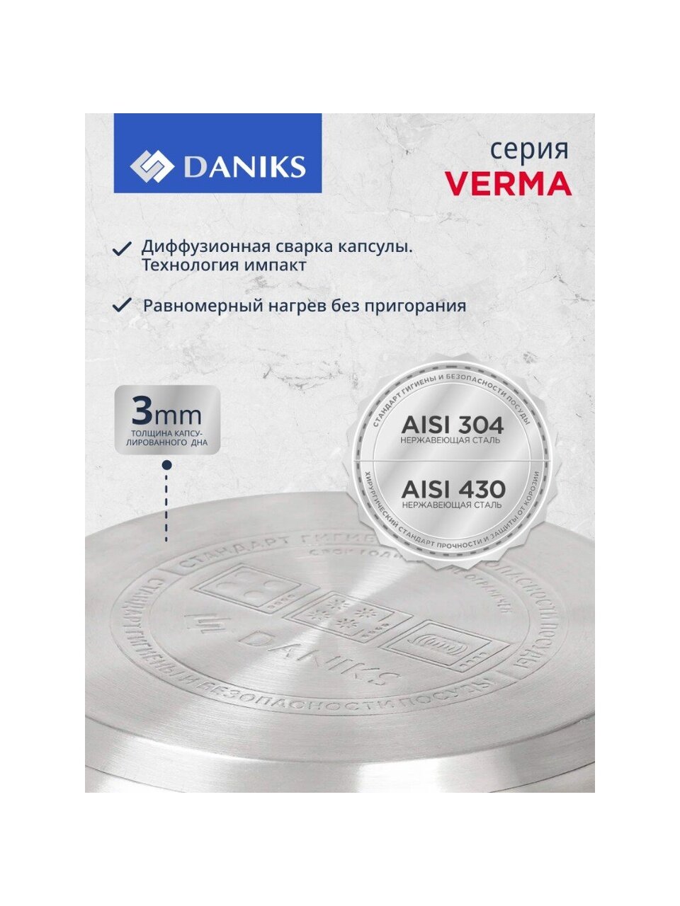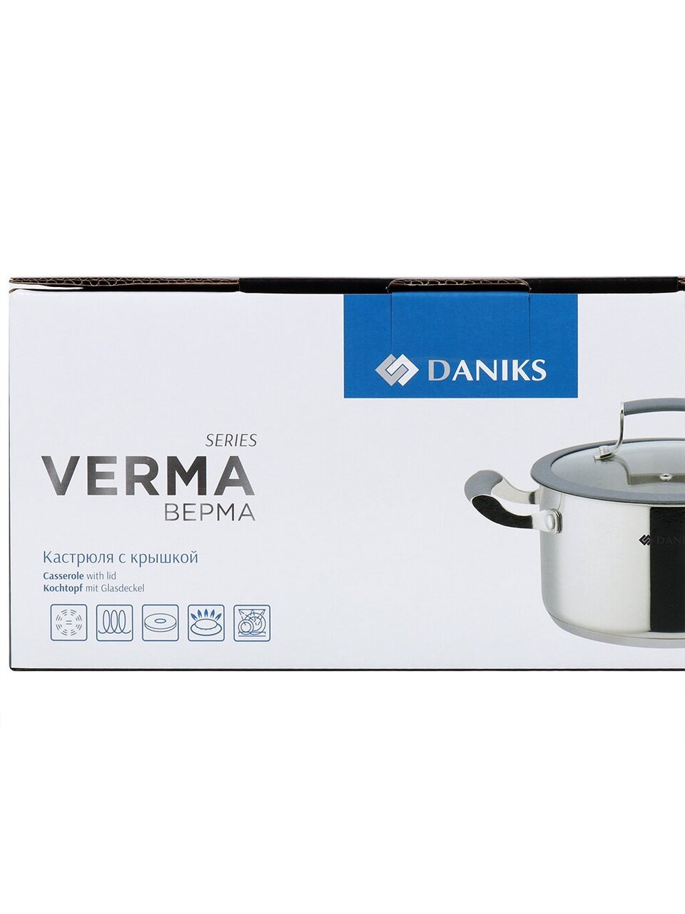 Кастрюля нержавеющая сталь, 1.7 л, крышка стекло, Daniks, Верма, CW-S071-16, индукция