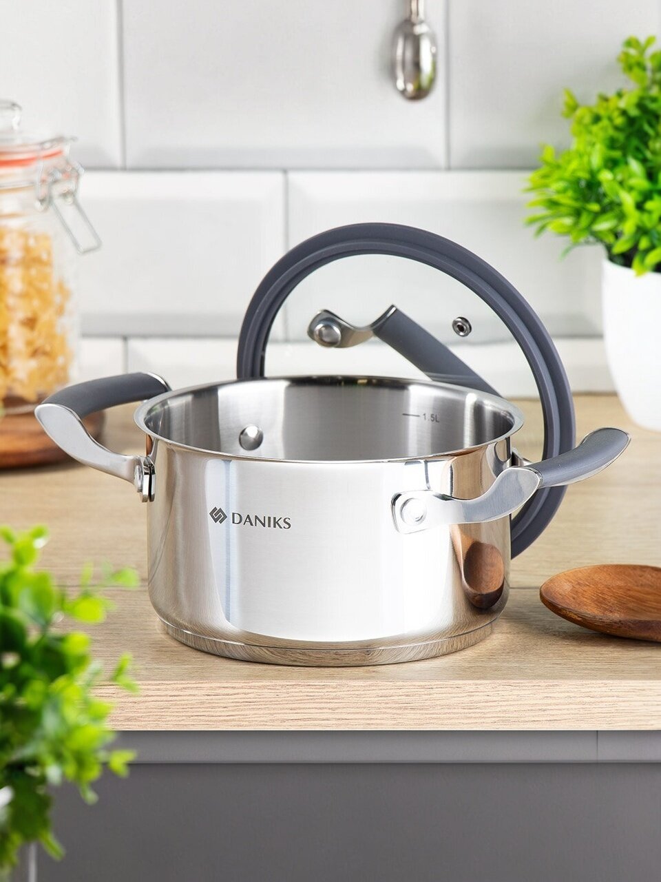 Кастрюля нержавеющая сталь, 1.7 л, крышка стекло, Daniks, Верма, CW-S071-16, индукция - фото 1 от пользователяКастрюля нержавеющая сталь, 1.7 л, крышка стекло, Daniks, Верма, CW-S071-16, индукция - фото 2 от пользователя