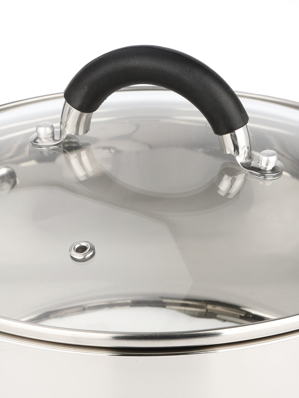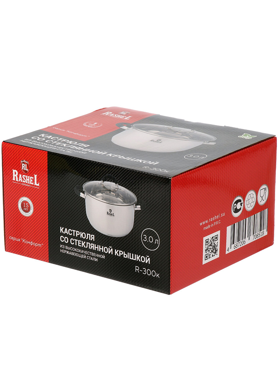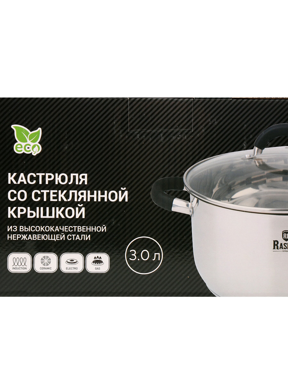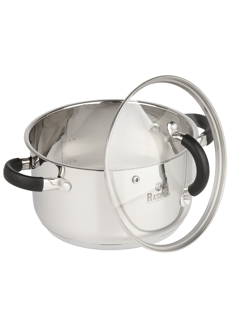 Кастрюля RasheL R-300к из нержавеющей стали 18/10, 3.6 л: силиконовые ручки, стеклянная крышка, подходит для индукционных плит. Решение для кухни без хлопот.