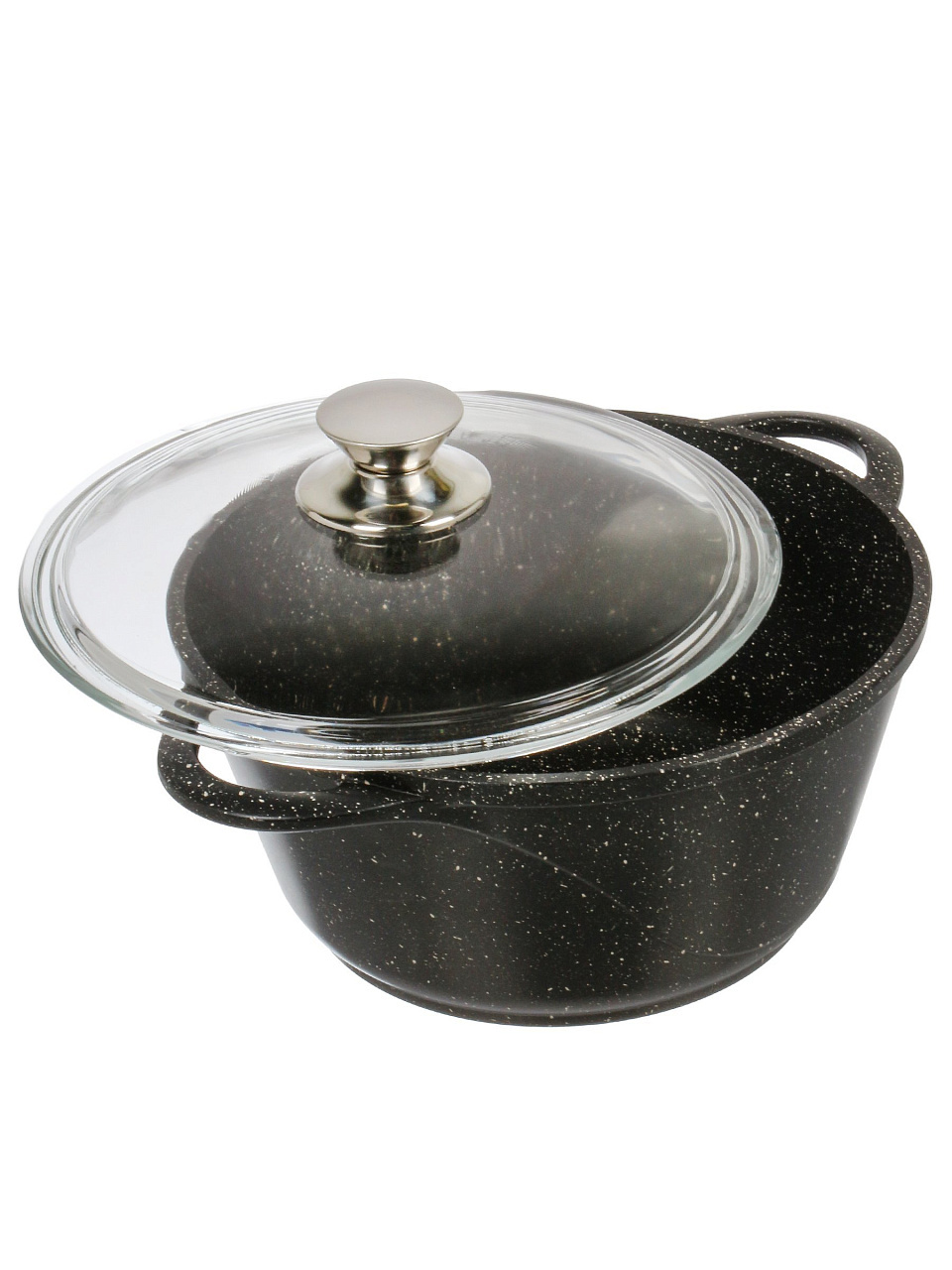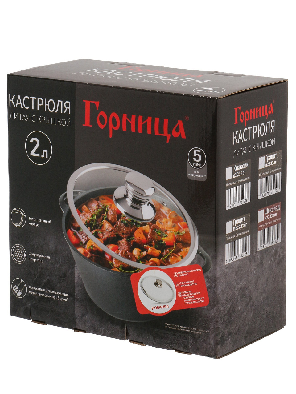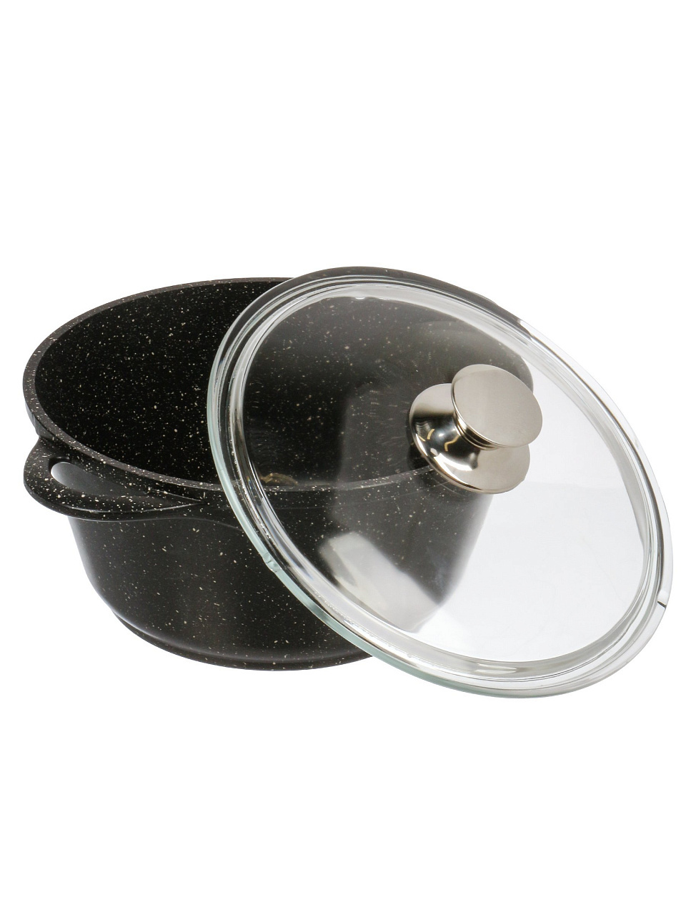Кастрюля 2 л с антипригарным гранитным покрытием и стеклянной крышкой Горница Гранит: идеальный выбор для дома и дачи, легко моется, долговечна.