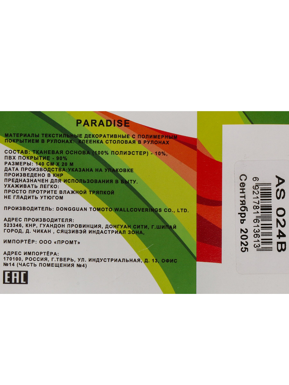 Вы можете приобрести «Клеенка Парадиз, 1.4х20 м, ПВХ на тканевой основе, AS-024B» и другие товары в нашем интернет-магазине в Твери по низким ценам и с бесплатным самовывозом.