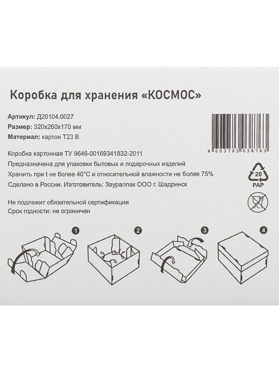 Вы можете приобрести «Коробка для хранения, 1 секция, с крышкой, складная, 32х26х17 см, гофрокортон, белый/бурая, Космос, Д20104.0027» и другие товары в нашем интернет-магазине в Воронеже по низким ценам и с бесплатным самовывозом.