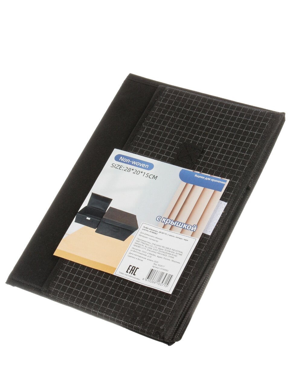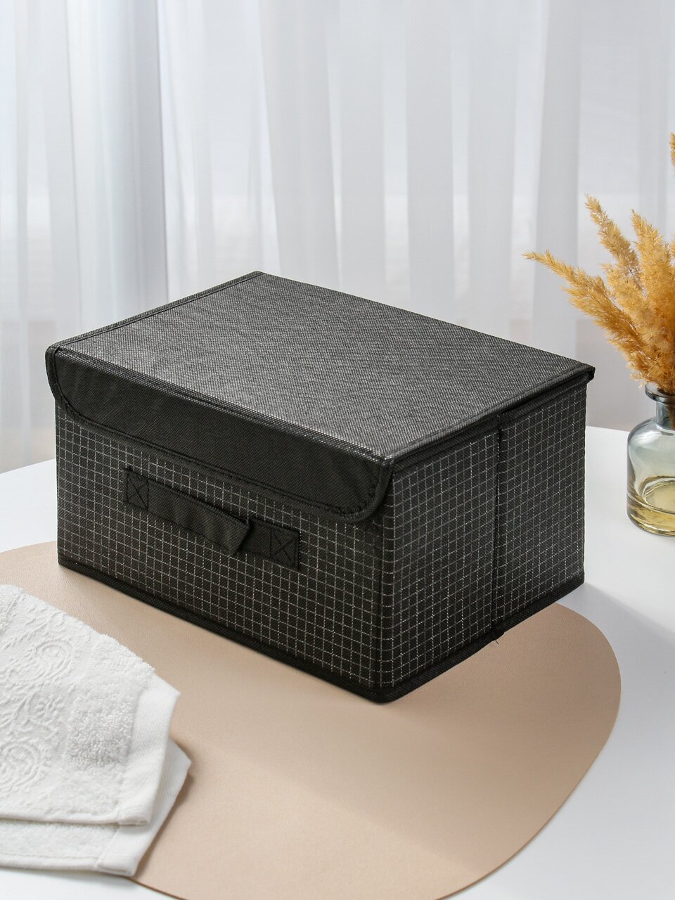 Складной кофр для хранения 28х20х15 см с крышкой: компактное решение для порядка дома и дачи, стиль "черная клетка".