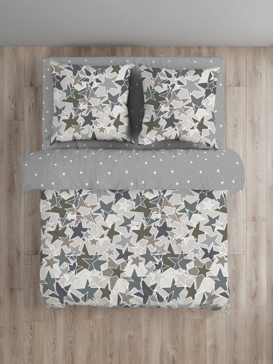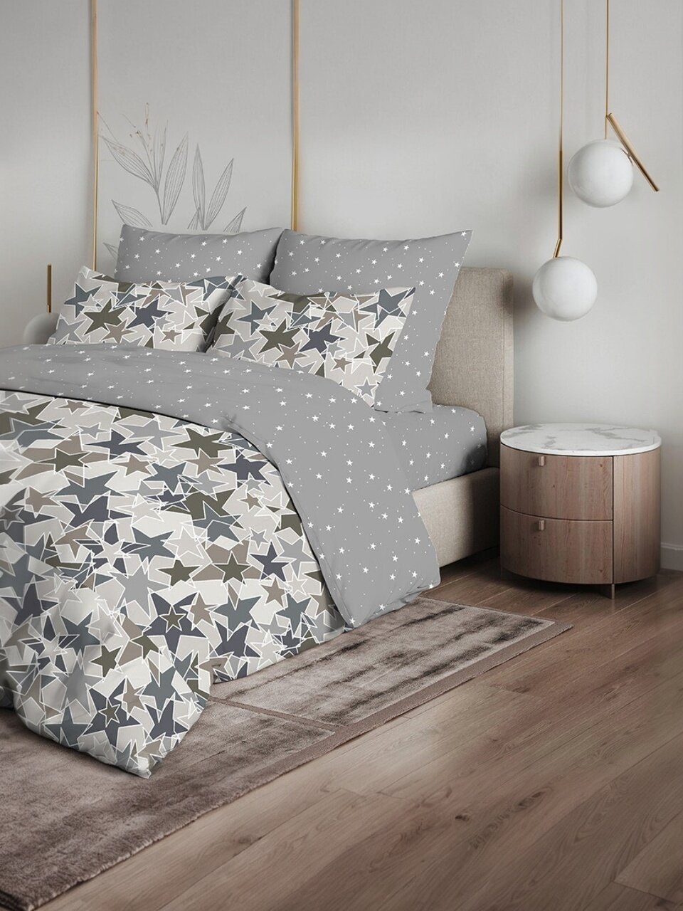 Многие спрашивают: «Как выбрать постельное белье для стандартной 1.5-спальной кровати?» — этот комплект полностью отвечает требованиям: простыня и пододеяльник подходят по размеру, а две наволочки обеспечивают универсальность. В отличие от синтетических аналогов, натуральная бязь не электризуется и не вызывает раздражения. Дизайн с рисунком «звезды» смотрится современно и гармонично впишется в интерьер любой спальни.