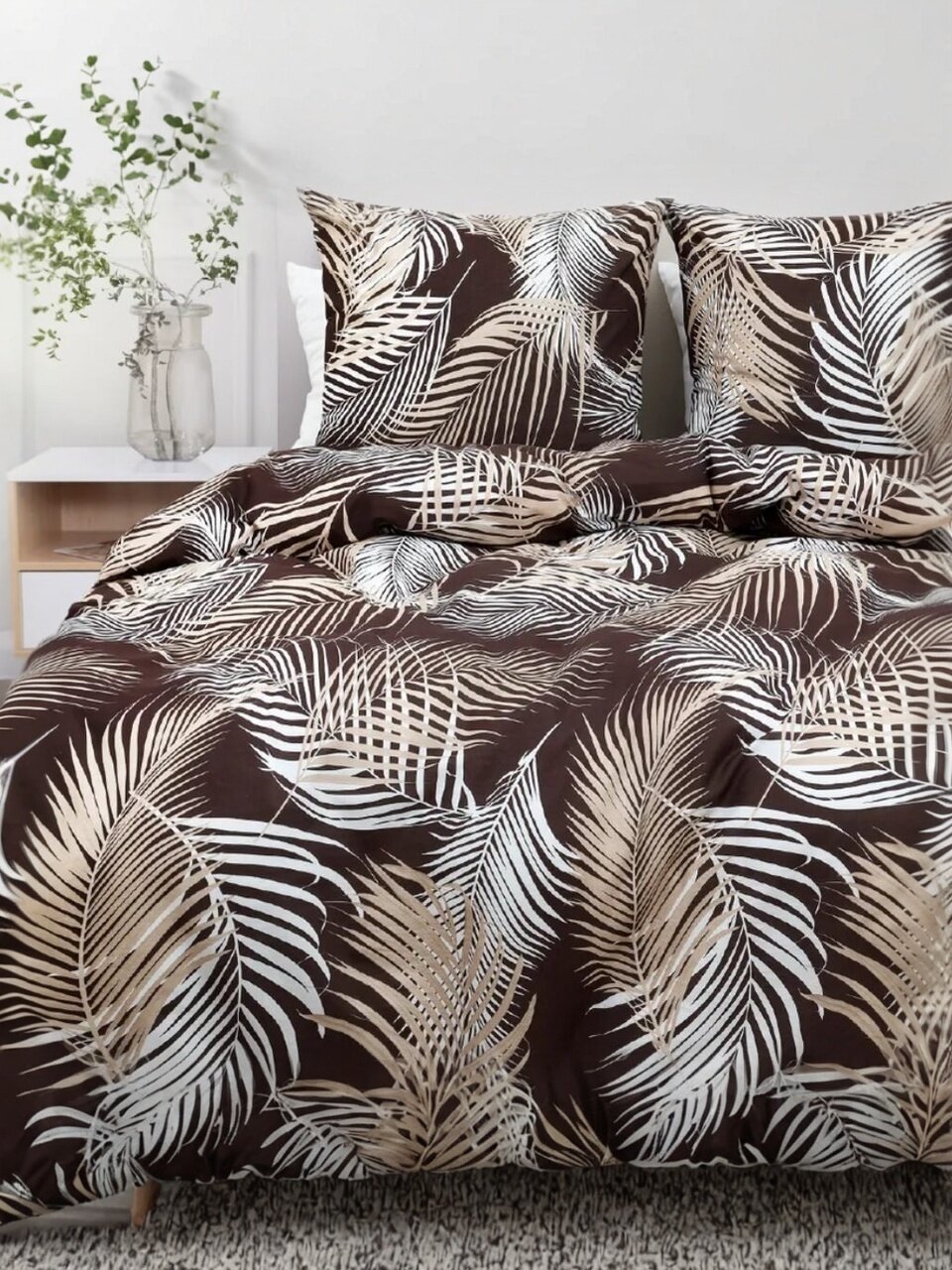 - Удобные размеры: простыня 200х216 см, пододеяльник 175х215 см, 2 наволочки 70х70 см — подходят для большинства стандартных двуспальных кроватей