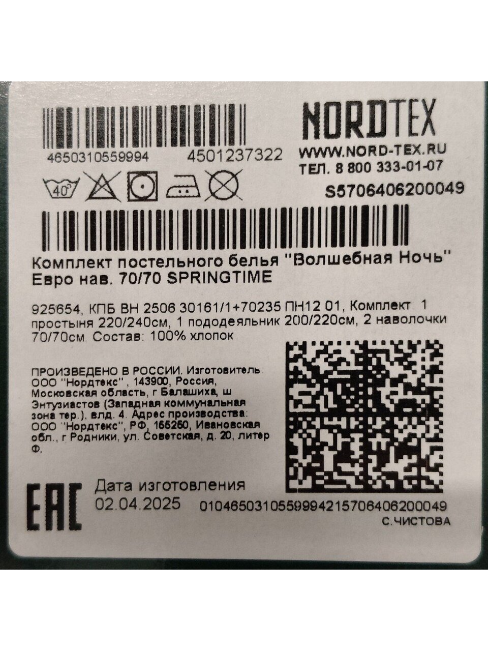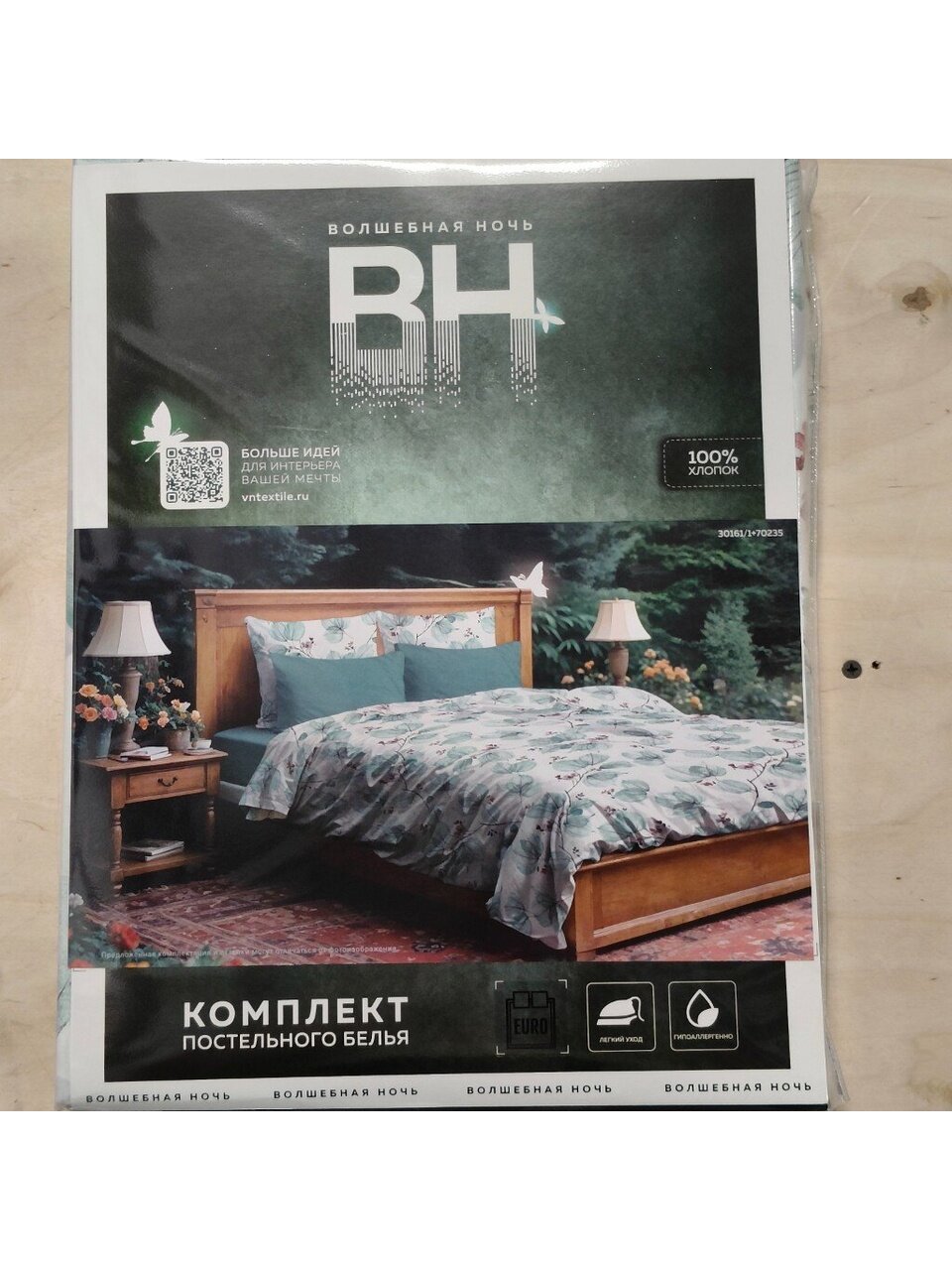 Постельное белье евро Волшебная ночь Springtime — натуральный перкаль, простыня 220х240 см, 2 наволочки 70х70 см, для комфортного сна и стильного подарка.