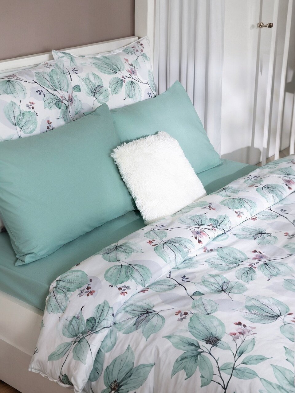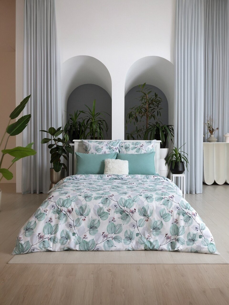 Если вы спрашиваете, чем отличается перкаль от других тканей, — он прочнее и мягче обычного хлопка, дольше сохраняет свежесть и не скатывается со временем. Комплект подходит для стандартных и увеличенных кроватей, простыня не на резинке — удобно заправлять даже на высоких матрасах. Благодаря подарочной упаковке и стильному дизайну с ветками и цветами, этот набор станет отличным решением для подарка на новоселье или праздник. Как использовать? Просто застелите кровать — ткань быстро разглаживается, сохраняет форму даже после частых стирок при 40°.