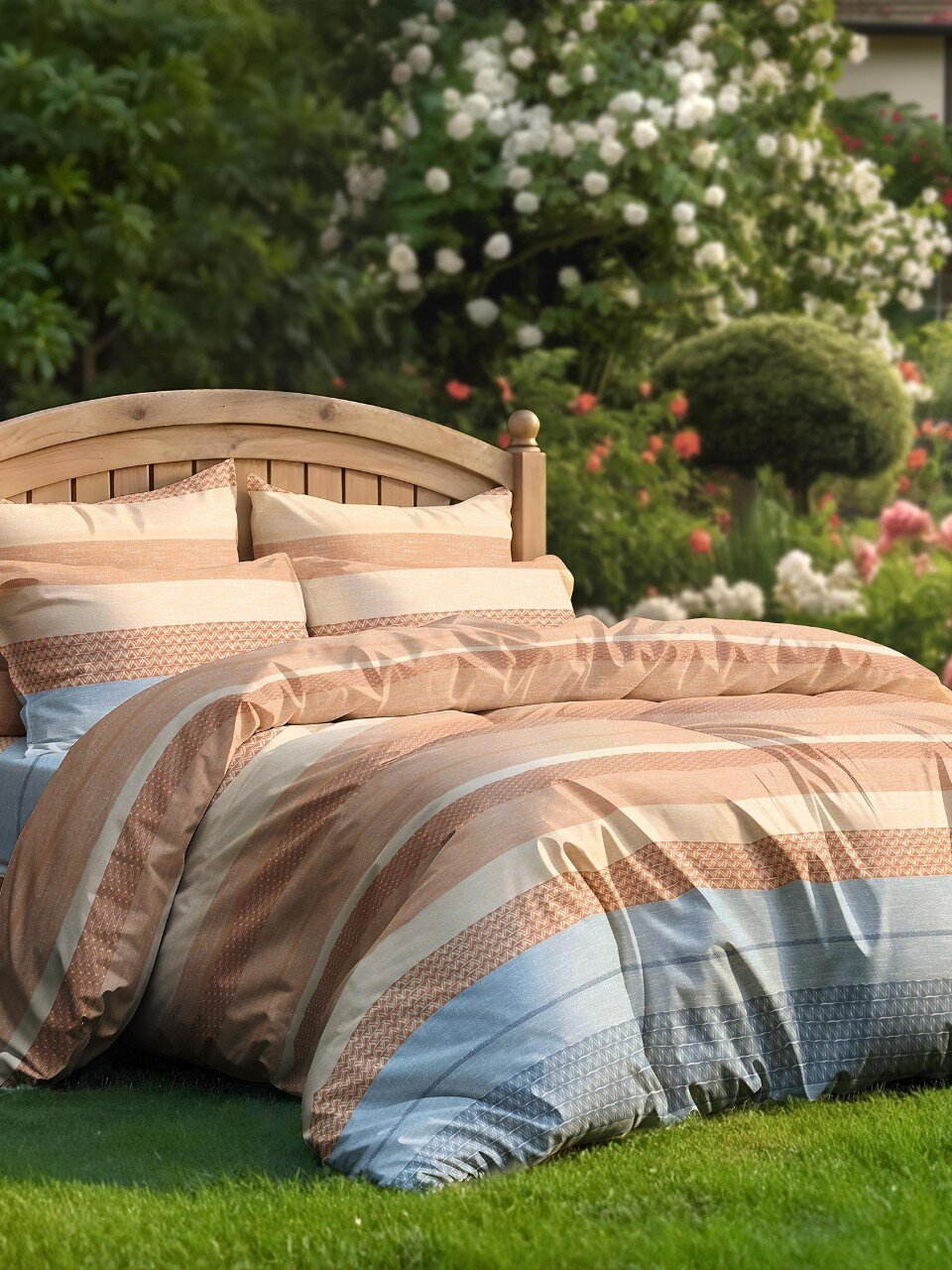 В отличие от стандартных комплектов, здесь увеличенные размеры простыни (220х240 см) и пододеяльника (200х220 см), что особенно важно для высоких матрасов или евро-кроватей. Комплект легко впишется в любой интерьер благодаря универсальному бежевому цвету и лаконичному дизайну в полоску. Если вы ищете, что лучше для дачи или как выбрать постельное белье для подарка, обратите внимание на подарочную упаковку и практичность комплекта.