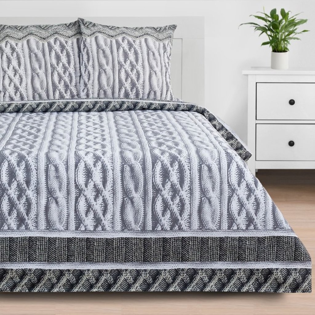 Евро: пододеяльник, 200 × 217 см — 1шт.; простыня, 220 × 240 см — 1 шт.; наволочка, 70 × 70 см — 2 шт.