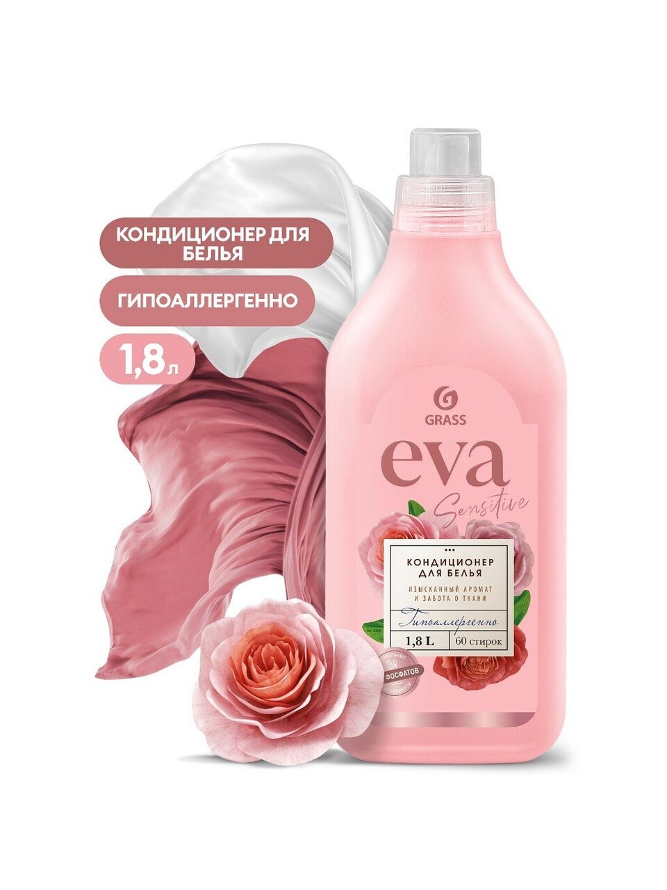 Кондиционер для белья Grass Eva Sensitive 1.8 л — концентрат для мягкости, свежести и защиты ткани. Экономия до 50% и забота о чувствительной коже.