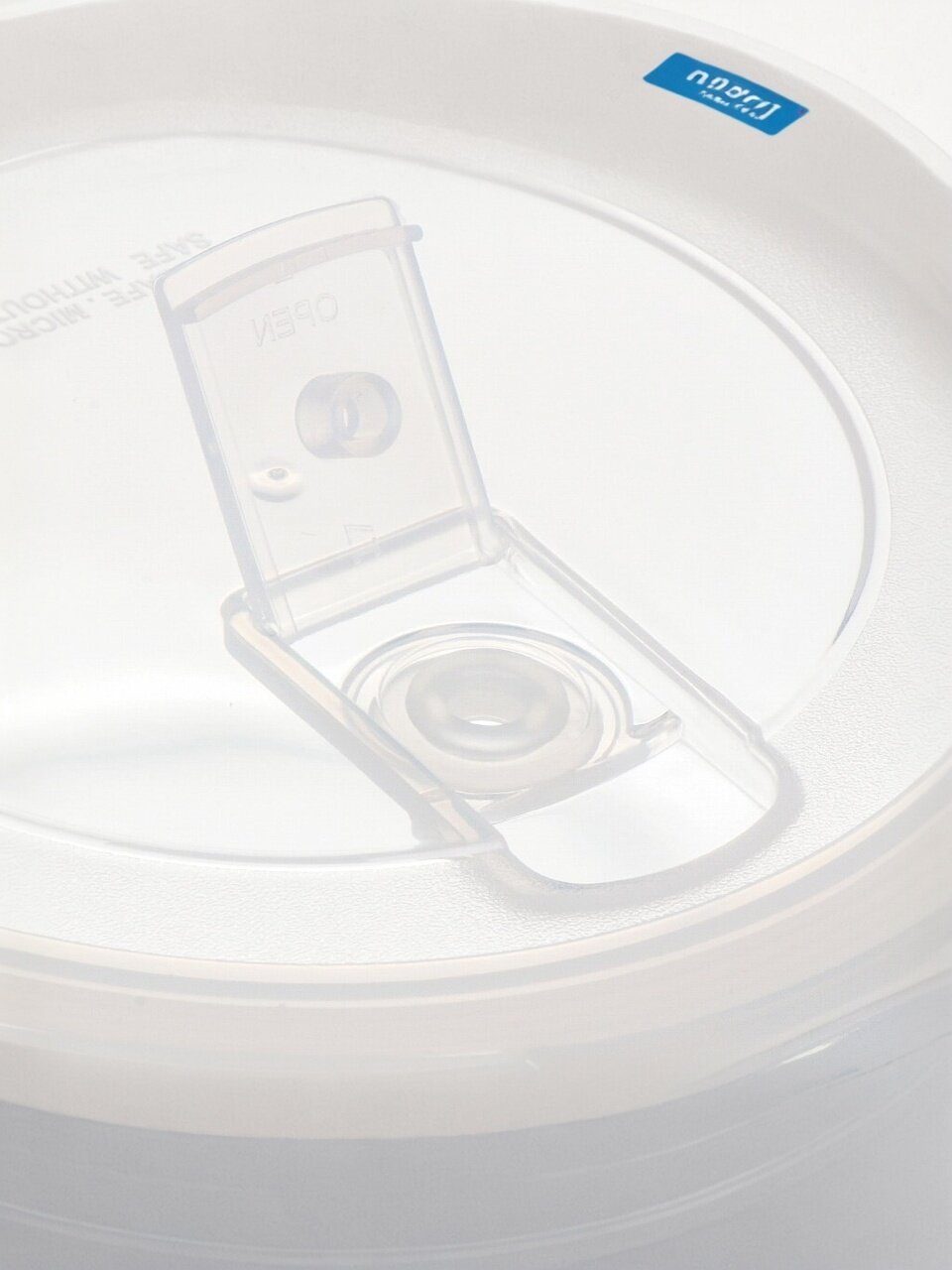 - Герметичность и универсальность: плотная крышка с защёлкой и клапаном сохраняет свежесть и предотвращает проливы