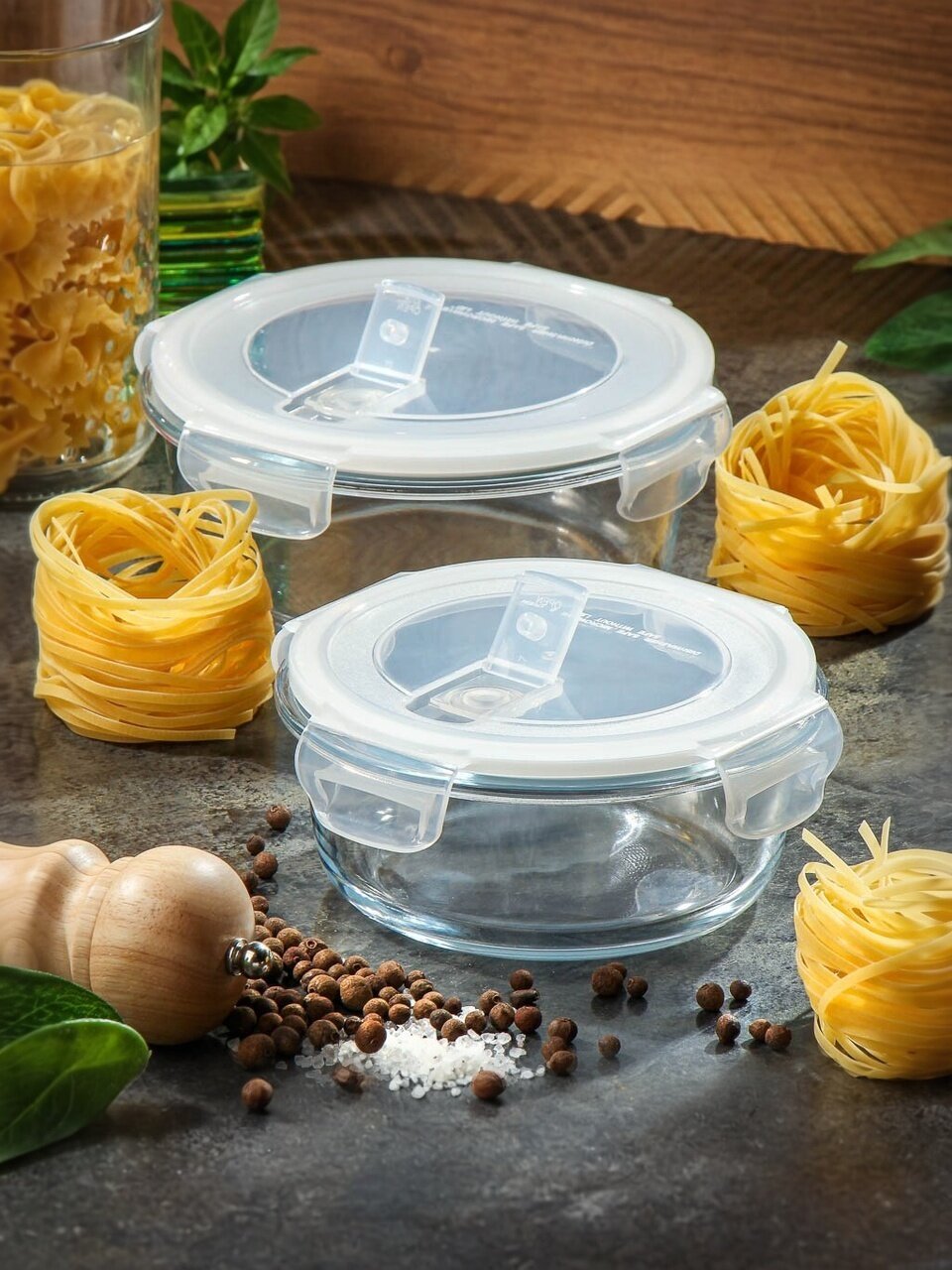 В отличие от пластиковых аналогов, контейнер Daniks сохраняет вкус и свежесть пищи без риска выделения вредных веществ при нагреве. Его круглая форма и объём 0.95 л удобны для хранения салатов, супов, гарниров. Часто спрашивают, подходит ли этот контейнер для горячих блюд — да, жаропрочное стекло выдерживает высокие температуры, а клапан на крышке предотвращает образование конденсата. Если вам важно купить недорого пищевой контейнер для дачи или для офиса, эта модель сочетает в себе долговечность и универсальность.