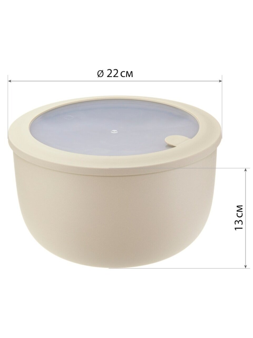 Герметичная круглая миска 3,6 л Idea Нео: надежное хранение, заморозка и разогрев в СВЧ. Безопасный пластик, универсальный размер, стиль «латте».