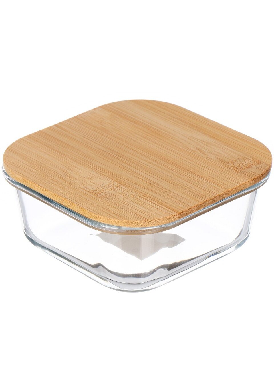 Стильный контейнер из жаропрочного стекла 0.8 л с бамбуковой крышкой: храните и разогревайте еду безопасно, экологично и удобно — идеальный выбор для дома и дачи.