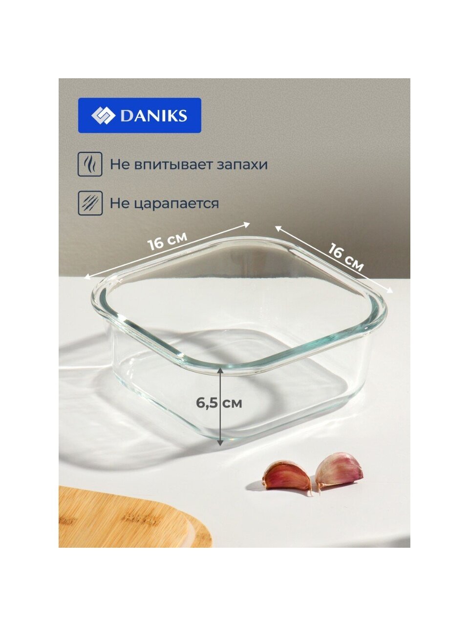 Объём контейнера — 0.8 литра, размеры: 16×16×6.5 см. Это оптимальный объём для порционного обеда, закусок или хранения остатков еды.