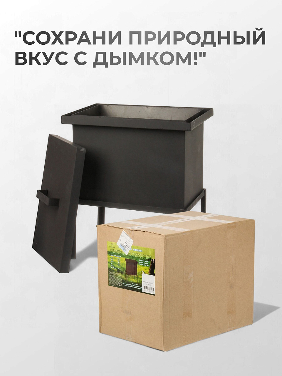- Термостойкая черная матовая краска покрывает корпус коптильни, крышку и подставку, защищая их от коррозии и сохраняя привлекательный внешний вид.