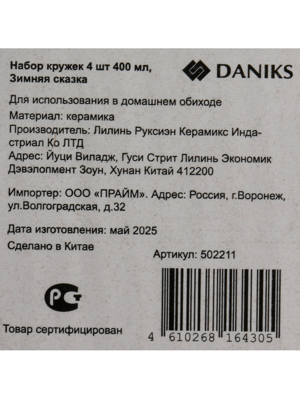 Кружка керам, 4 шт, 400 мл, Зимняя сказка, Daniks, BR562/3828-1