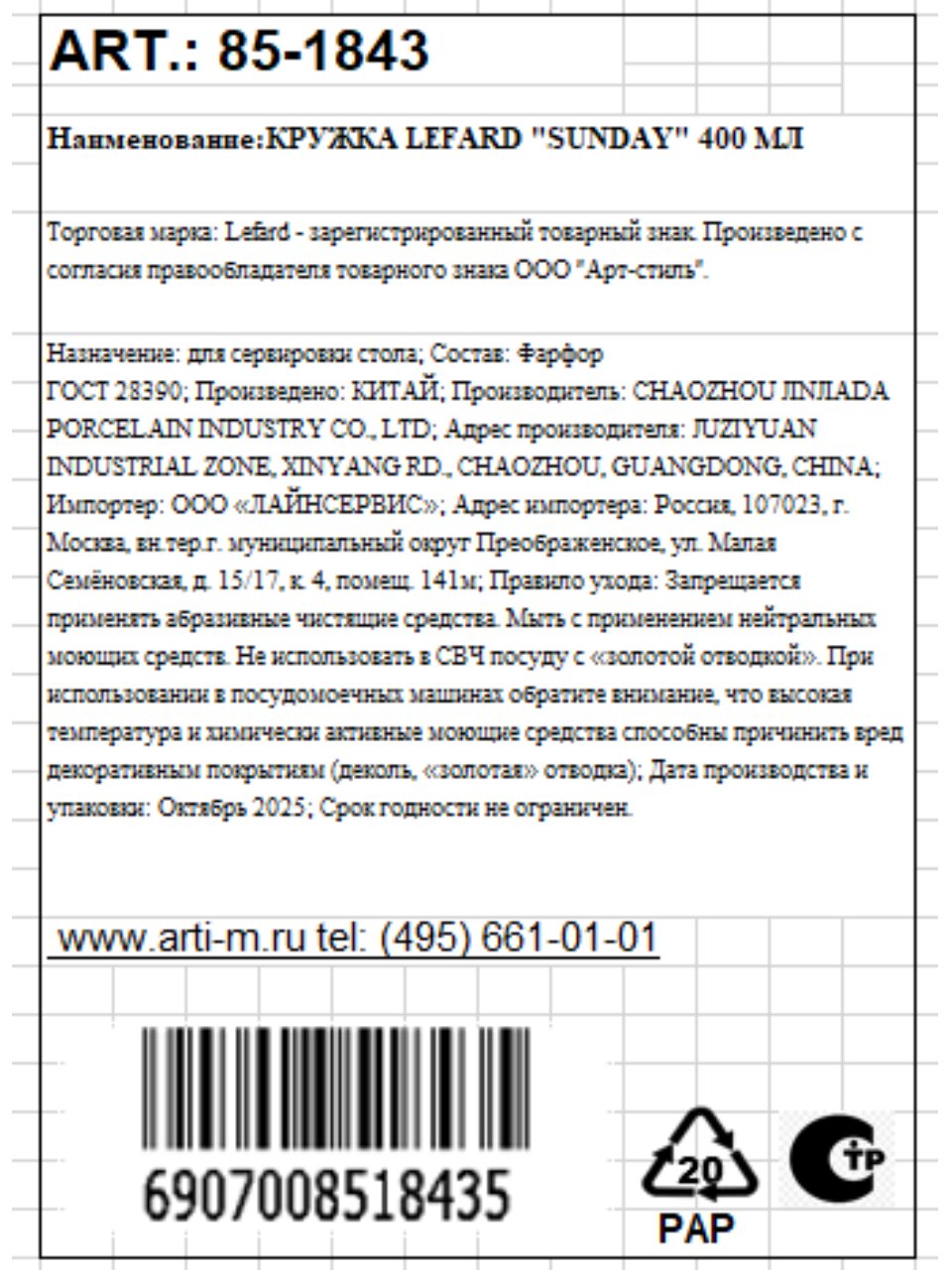 Вы можете приобрести «Кружка фарфор, 400 мл, Sunday, Lefard, 85-1843» и другие товары в нашем интернет-магазине в Коврове по низким ценам и с бесплатным самовывозом.