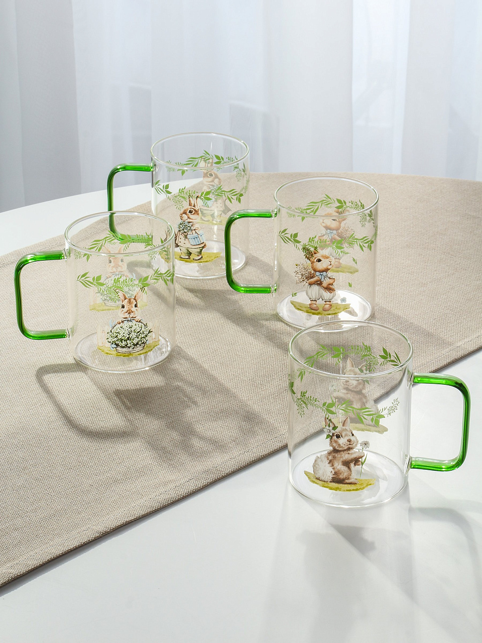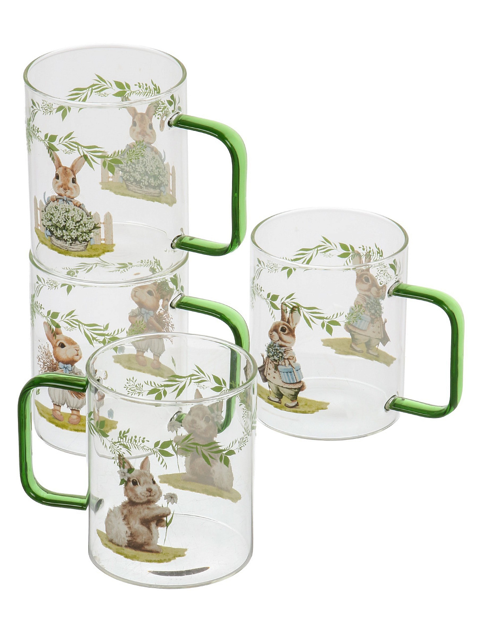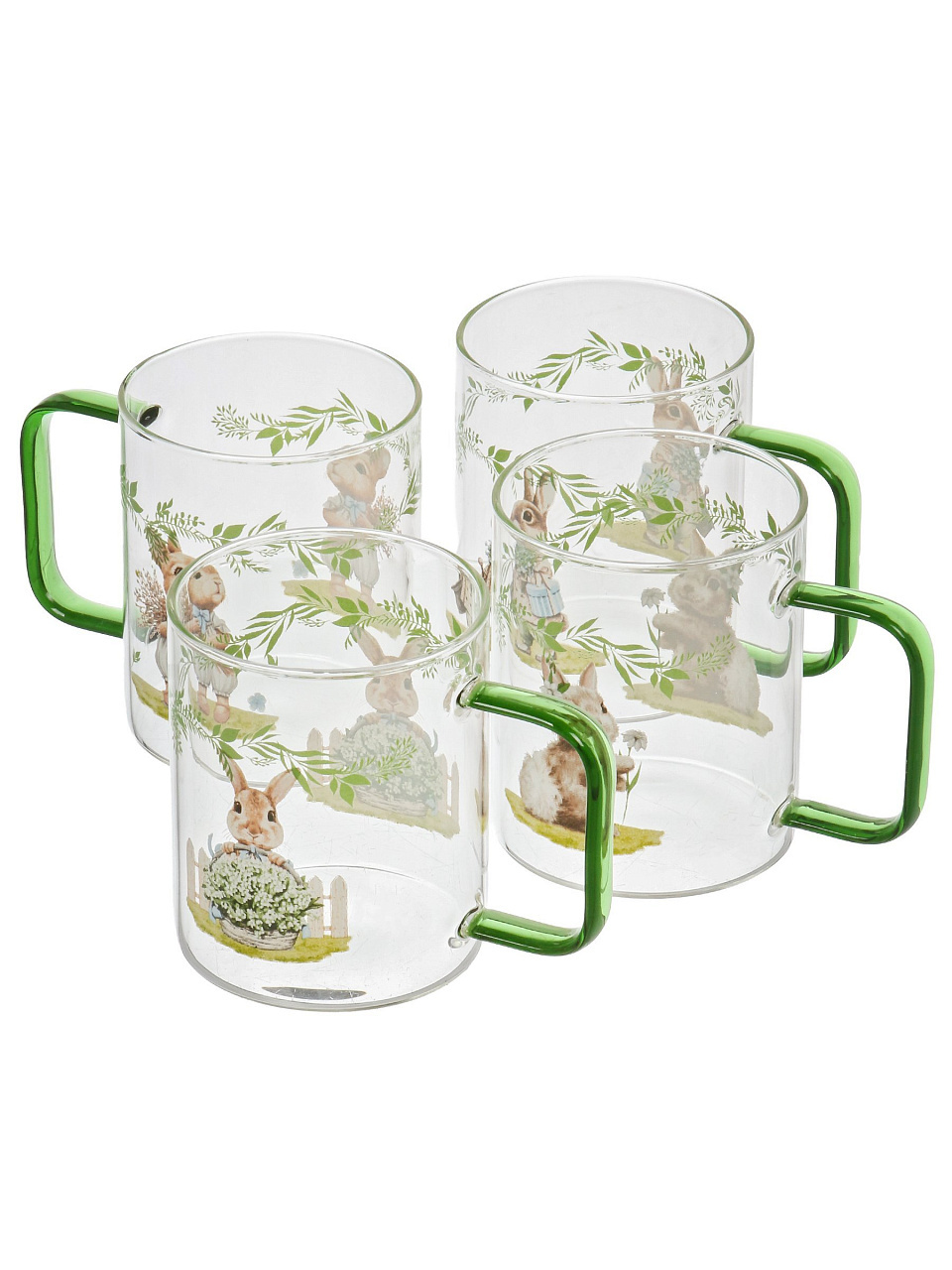 Набор стеклянных кружек BUNNY TALE (4 шт по 400 мл) — универсальный подарок в стильной упаковке для уютных чаепитий дома и на даче.