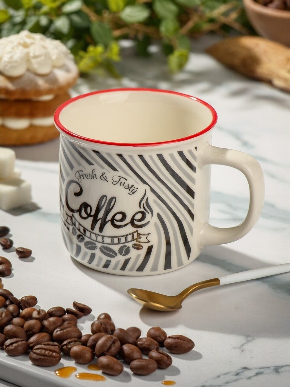 Керамическая кружка 350 мл с кофейным дизайном — идеальный выбор для дома, офиса и подарка: стиль, прочность, легкость ухода по доступной цене.