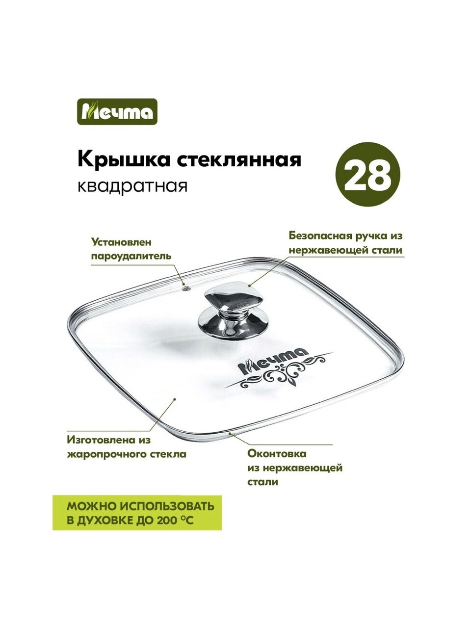 Вы можете приобрести «Крышка для посуды стекло, 28 см, Мечта, металлический обод, кнопка нержавеющая сталь, квадратная для гриля, КР28Г» и другие товары в нашем интернет-магазине в Клинцах по низким ценам и с бесплатным самовывозом.