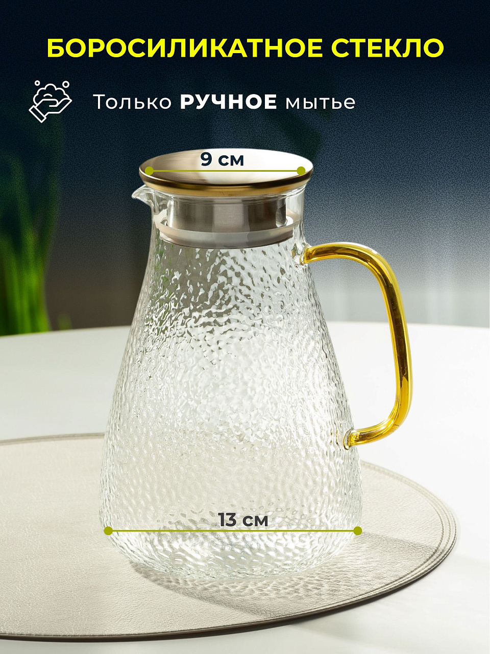 В прозрачном кувшине Мозаика любые напитки будут выглядеть великолепно. Благодаря термостойким свойствам стекла в таком кувшине можно подать не только прохладительные, но и горячие напитки, например, чай для большой компании гостей.