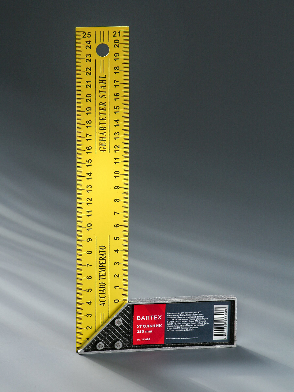 Угольник 250 мм Bartex R-250 — точность разметки для ремонта и строительства, долговечный металлический корпус, оптимально для дома и дачи.