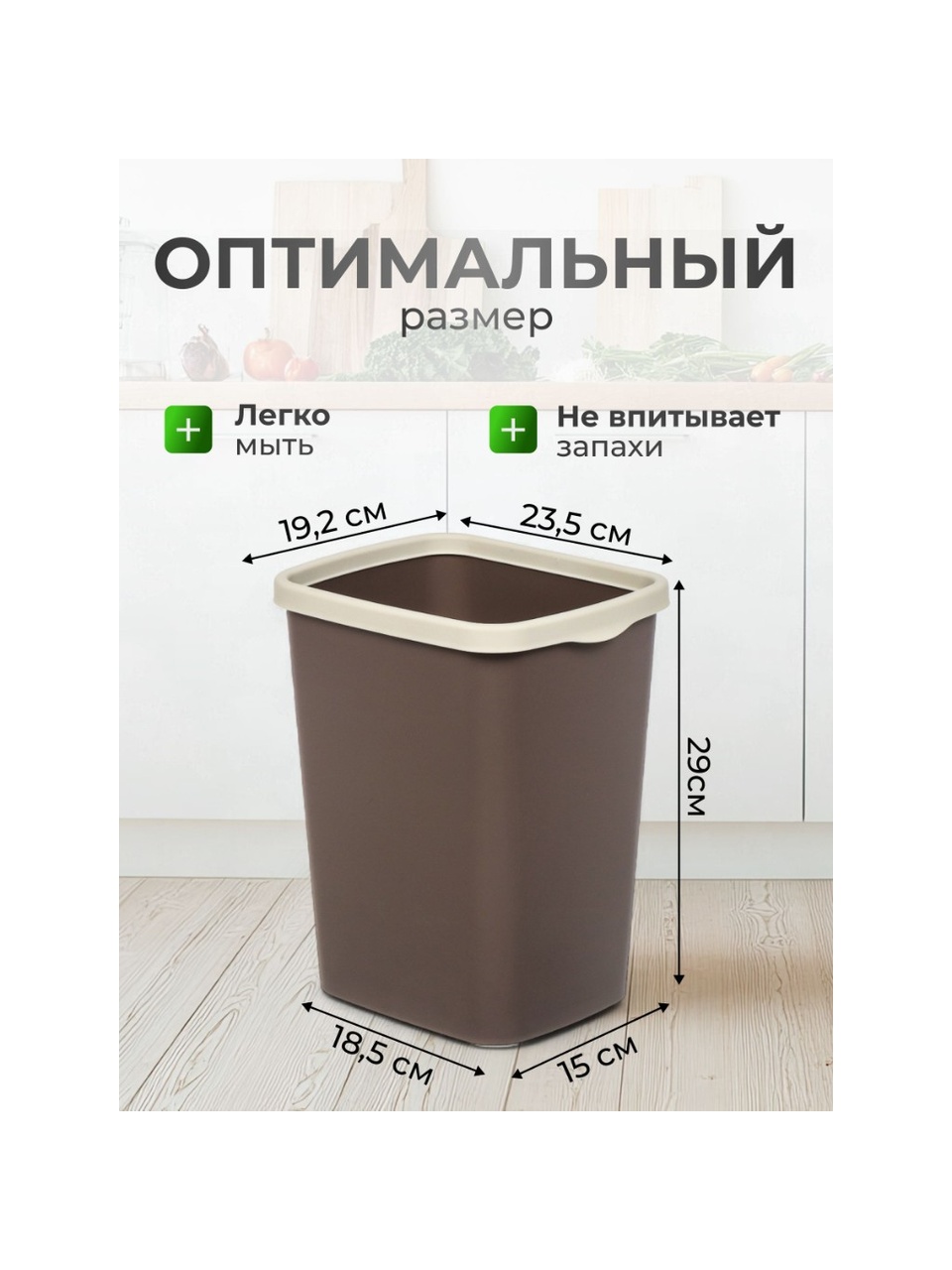 Мусорное ведро с фиксатором - это удобный и практичный аксессуар для любого дома или офиса. Стильная урна универсальной прямоугольной формы и практичного шоколадного цвета с контрастным фиксатором подойдет под любой интерьер.