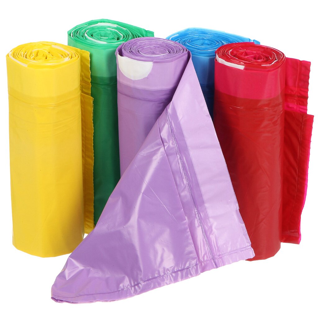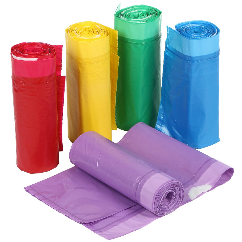 Пакеты для мусора 60 л, 10 шт, 35 мкм, с завязками, 5 рулонов, цветные — удобно, герметично, экономно: оптимальный выбор для дома и дачи