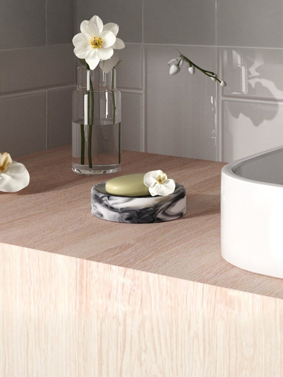 Мыльница настольная, Zenfort, Лава, полирезина, 11.5х11.5х2.4 см, серая, 106224 - фото 1 от пользователя