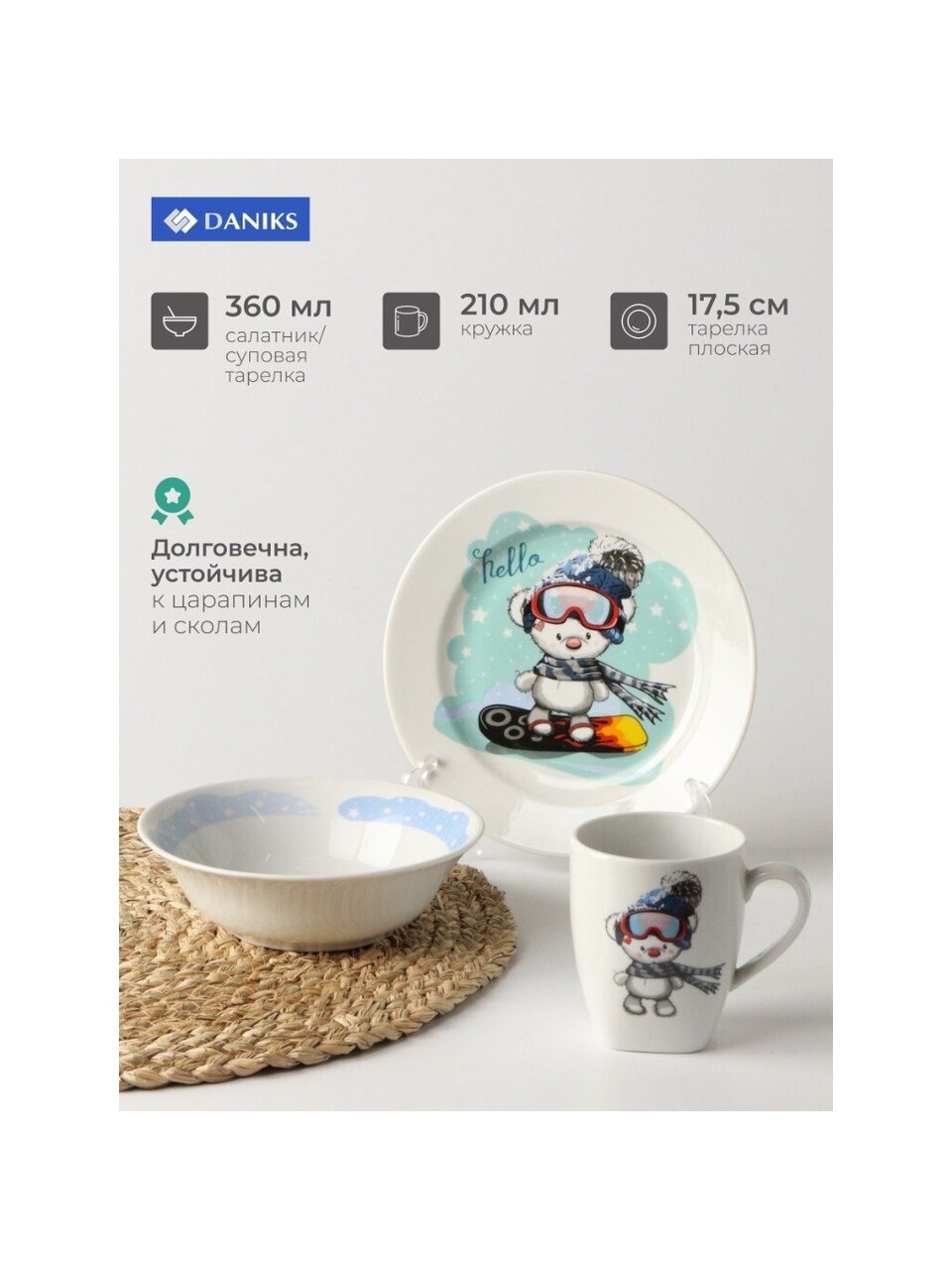 Вы можете приобрести «Набор детской посуды фарфор, 3 шт, Сноубордист, тарелка 17.5 см, салатник 360 мл, кружка 210 мл, Daniks» и другие товары в нашем интернет-магазине в Старом Осколе по низким ценам и с бесплатным самовывозом.