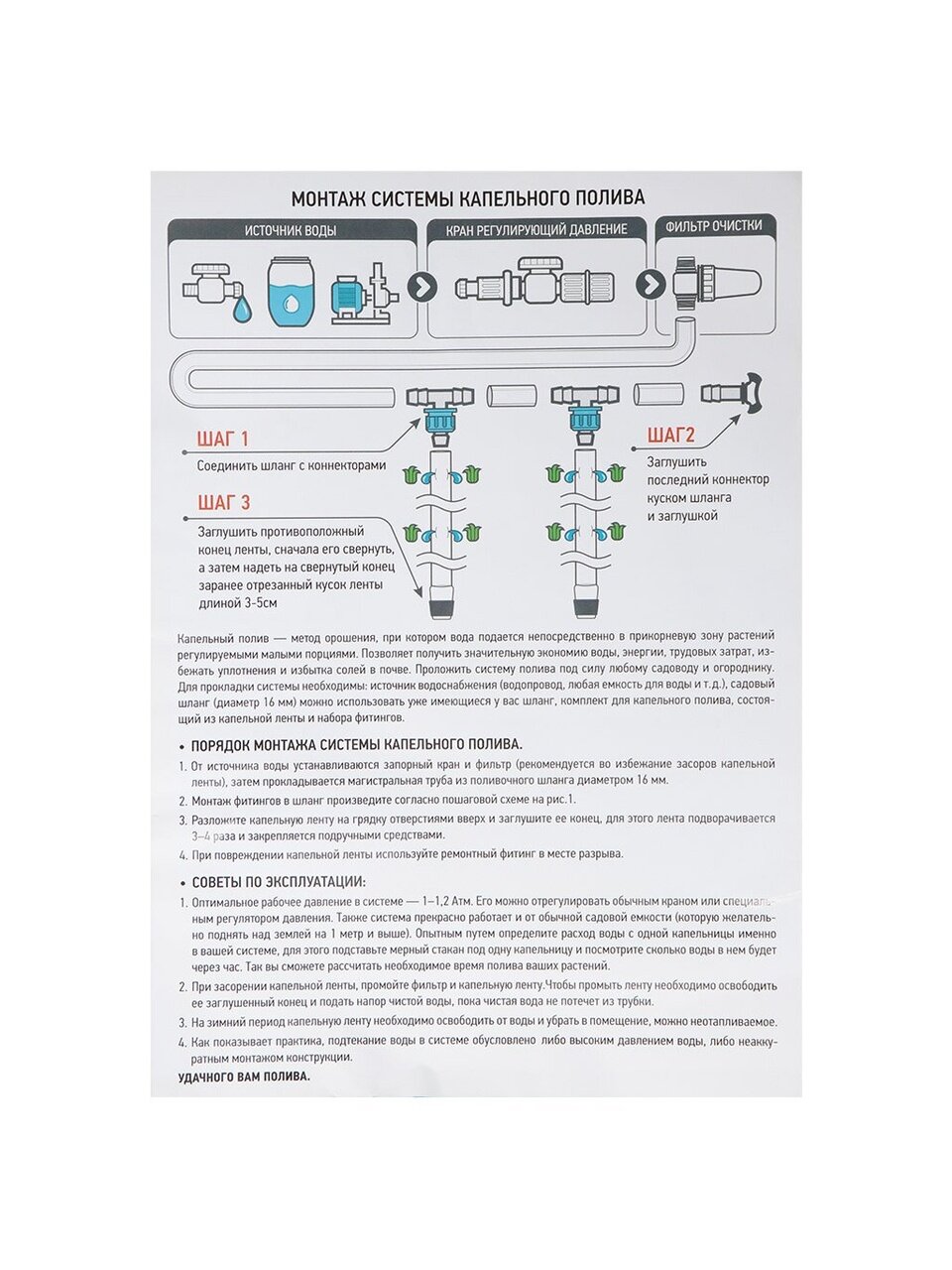 Использование системы капельного полива — это не только значительное сокращение расхода воды, но и повышение урожайности благодаря постоянному и равномерному увлажнению почвы. Компактная и функциональная конструкция позволяет адаптировать систему для различных участков и условий. Набор станет отличным выбором для владельцев дач и садов, стремящихся автоматизировать уход за растениями и получить здоровый, богатый урожай без лишних хлопот.